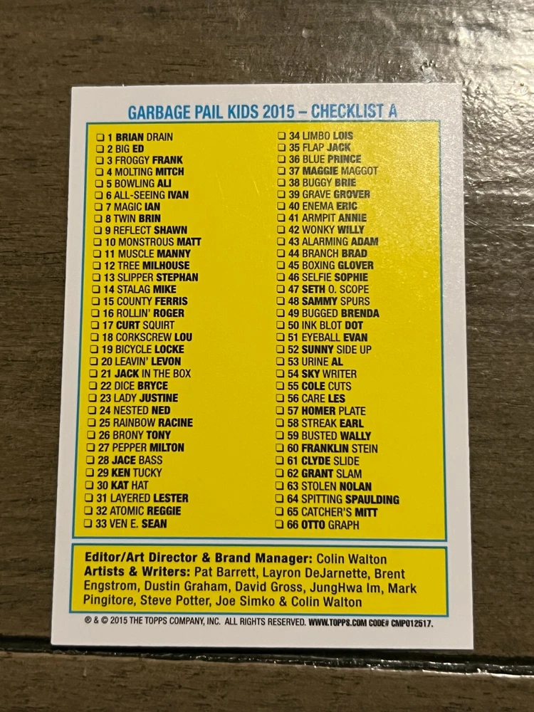 Thank you so much for looking it means a lot to us! 2019 Garbage Pail Kids REVENGE OF The HORROR-IBLE "My, how they grow up fast. Adam Bomb, Nasty Nick, New Wave Dave, Brainy Janie and the rest of the original GPK crew are turning 30" Pick A Single Card Listing Please make sure to add all items to cart to combine ship Save us as your favorite seller to get coupons and discounts! **The images of empty pack shown are for illustration purposes** Shipping To save you the most money we use eBay envelope Service And we ship out everyday even on weekends. We have the listing set at 3-4 days handling time to help with it getting scanned at USPS Generally I would say most everything is delivered with in a week, Some cases can take longer but we will always make sure you are taken care of if a mail piece gets lost (which is rare) On items Over Twenty dollars or more then 10 Singles your order will go out Ground Advantage Condition We Strive to send out the very best cards we have and new product is added daily please ask any questions prior to buying *** Please note that some series for example OS 1-15 Series GPK, 70s Wacky's 70s Star wars will not have prefect cards *** we do weed out as many as we can, of course if you are not happy we will 100% take care of you Returns We offer 30 day returns. Please make sure you use the ebay return system or contact us if you need to return an item. We require that labels are still attached if returning. If this label is removed, we may refuse the return. Any returns after the 30 day and before 60 days will qualify for exchanges only. Anything after 60 days may not be returned.