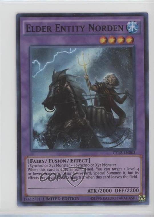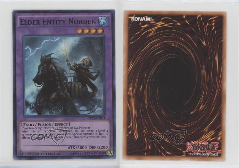 2015 Yu-Gi-Oh! Mega-Tins - Limited Edition [Base] #CT12-EN003 Elder Entity Norden COMC Item: 175148965 - YuGiOh Card - Featuring Elder Entity Norden Search for more: 2015 Yu-Gi-Oh! Mega-Tins Search for more: 2015 Yu-Gi-Oh! Mega-Tins - Limited Edition [Base] View all of our Listings Auctions Buy It Now About Us Located in the beautiful Pacific Northwest, COMC (Check Out My Cards) is the world's largest consignment service for trading card singles. More than 10,000 people have used our consignment service to list over 50 million trading cards. Find out how we can help you consign your items on eBay by contacting us through eBay messaging. COMC -- "The Safe & Easy Way to Buy & Sell" Raw Condition for Modern Cards Unless otherwise noted, raw modern cards are listed in Near Mint-Mint condition or better. A NM-MT card appears to be Mint at first glance, but upon closer inspection, may exhibit some of the following: minor print defects (e.g. roller marks, print line, dimple), minor scratches, slight edge wear, and slight corner wear. Centering is clearly visible in the images provided and does not factor into our condition assessment. Raw Condition for Vintage Cards Unless otherwise noted, raw vintage cards are listed in Excellent condition or better. An EX card may exhibit some of the following: minor rounding of corners, surface wear, print defects, light scratches, and slight edge wear/chipping. Centering is clearly visible in the images provided and does not factor into our condition assessment. Domestic Shipping Combined shipping for multiple items is available. To receive combined shipping, please ensure all desired items are in your eBay shopping cart before proceeding to checkout. eBay limits orders to 40 items per order. We automatically combine multiple orders placed on the same day. If you place multiple orders on the same day, please contact us to request a refund of applicable shipping costs. Signature confirmation may be required on invoices over $400. All cards are protected and shipped securely. International Shipping COMC offers eBay's International Shipping (EIS) for international orders under $2,500* (see country exceptions below). All duties and import fees are paid at checkout; in the rare event that there are additional import fees upon delivery, these are borne by the buyer. EIS packages route through a shipping hub in Erlanger, KY before shipping to their final destination. Please note that EIS does not allow for combined shipments. The shipping rates are determined by eBay and cannot be adjusted. *Maximum sale price exceptions: Colombia, Kuwait ($2,000); Taiwan ($1,539); Chile, Costa Rica, Guatemala, Honduras, Trinidad and Tobago ($1,000); Antigua and Barbuda, Aruba, Belize, Dominica, Grenada, Philippines, Saint Kitts and Nevis, Saint Lucia, Montserrat, Turks and Caicos Islands ($500); Dominican Republic, El Salvador ($200). Please request a shipping quote through eBay messaging for orders that exceed the maximum sale price supported by eBay's International Shipping. You will be responsible for all duties and import fees for international orders shipped outside the EIS. All cards are protected and shipped securely. Payment COMC does not accept offers on our cards through our eBay storefront. COMC utilizes eBay’s managed payments system. If you are experiencing difficulties making a payment, please contact eBay for assistance. Return Policy Returns are only accepted on the rare occasion the item is not as described. If you are making a return, please initiate the return process through eBay so a mailing label can be provided for you. Prior to listing, our expert team carefully assessed this item to represent it accurately. Please review the description and high-definition images prior to purchasing to ensure this item meets your satisfaction. We welcome you to contact us if you have further questions about this item. Trust and Integrity COMC carefully assesses each item consigned to us to prevent fraudulent items from entering the marketplace. If you believe an item offered on COMC may be fraudulent, please contact us with details so we can investigate the issue. Items we determine are outside our supported items policy may be removed. Last Modified: 5/4/2025 10:23:19 PM PDT