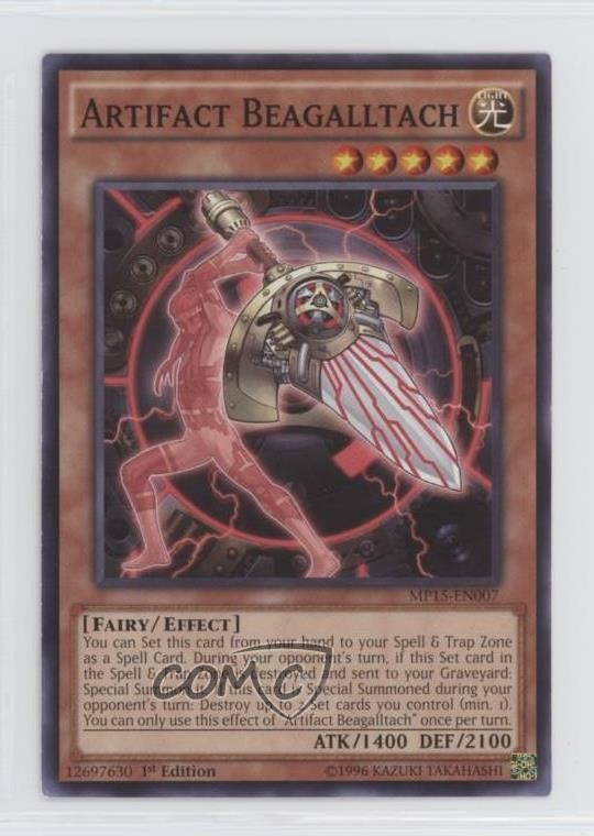 This Artifact Beagalltach card is a fantastic pull from the 2015 Mega-Tins Mega Pack! The first-edition rarity makes it a must-have for collectors, and its strong effect in Artifact decks gives duelists an edge. The card arrived in great condition, and buying from COMC was smooth—they’re reliable for trading card needs. A solid addition to any Yu-Gi-Oh! collection!