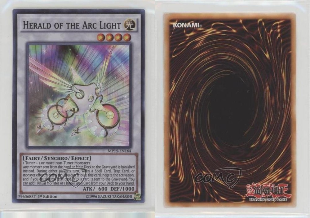 2015 Yu-Gi-Oh! Mega-Tins - Mega Pack [Base] - 1st Edition #MP15-EN164 Herald of the Arc Light COMC Item: 175148235 - YuGiOh Card Search for more: 2015 Yu-Gi-Oh! Mega-Tins Search for more: 2015 Yu-Gi-Oh! Mega-Tins - Mega Pack [Base] - 1st Edition View all of our Listings Auctions Buy It Now About Us Located in the beautiful Pacific Northwest, COMC (Check Out My Cards) is the world's largest consignment service for trading card singles. More than 10,000 people have used our consignment service to list over 50 million trading cards. Find out how we can help you consign your items on eBay by contacting us through eBay messaging. COMC -- "The Safe & Easy Way to Buy & Sell" Raw Condition for Modern Cards Unless otherwise noted, raw modern cards are listed in Near Mint-Mint condition or better. A NM-MT card appears to be Mint at first glance, but upon closer inspection, may exhibit some of the following: minor print defects (e.g. roller marks, print line, dimple), minor scratches, slight edge wear, and slight corner wear. Centering is clearly visible in the images provided and does not factor into our condition assessment. Raw Condition for Vintage Cards Unless otherwise noted, raw vintage cards are listed in Excellent condition or better. An EX card may exhibit some of the following: minor rounding of corners, surface wear, print defects, light scratches, and slight edge wear/chipping. Centering is clearly visible in the images provided and does not factor into our condition assessment. Domestic Shipping Combined shipping for multiple items is available. To receive combined shipping, please ensure all desired items are in your eBay shopping cart before proceeding to checkout. eBay limits orders to 40 items per order. We automatically combine multiple orders placed on the same day. If you place multiple orders on the same day, please contact us to request a refund of applicable shipping costs. Signature confirmation may be required on invoices over $400. All cards are protected and shipped securely. International Shipping COMC offers eBay's International Shipping (EIS) for international orders under $2,500* (see country exceptions below). All duties and import fees are paid at checkout; in the rare event that there are additional import fees upon delivery, these are borne by the buyer. EIS packages route through a shipping hub in Erlanger, KY before shipping to their final destination. Please note that EIS does not allow for combined shipments. The shipping rates are determined by eBay and cannot be adjusted. *Maximum sale price exceptions: Colombia, Kuwait ($2,000); Taiwan ($1,539); Chile, Costa Rica, Guatemala, Honduras, Trinidad and Tobago ($1,000); Antigua and Barbuda, Aruba, Belize, Dominica, Grenada, Philippines, Saint Kitts and Nevis, Saint Lucia, Montserrat, Turks and Caicos Islands ($500); Dominican Republic, El Salvador ($200). Please request a shipping quote through eBay messaging for orders that exceed the maximum sale price supported by eBay's International Shipping. You will be responsible for all duties and import fees for international orders shipped outside the EIS. All cards are protected and shipped securely. Payment COMC does not accept offers on our cards through our eBay storefront. COMC utilizes eBay’s managed payments system. If you are experiencing difficulties making a payment, please contact eBay for assistance. Return Policy Returns are only accepted on the rare occasion the item is not as described. If you are making a return, please initiate the return process through eBay so a mailing label can be provided for you. Prior to listing, our expert team carefully assessed this item to represent it accurately. Please review the description and high-definition images prior to purchasing to ensure this item meets your satisfaction. We welcome you to contact us if you have further questions about this item. Trust and Integrity COMC carefully assesses each item consigned to us to prevent fraudulent items from entering the marketplace. If you believe an item offered on COMC may be fraudulent, please contact us with details so we can investigate the issue. Items we determine are outside our supported items policy may be removed. Last Modified: 6/8/2025 7:41:56 AM PDT