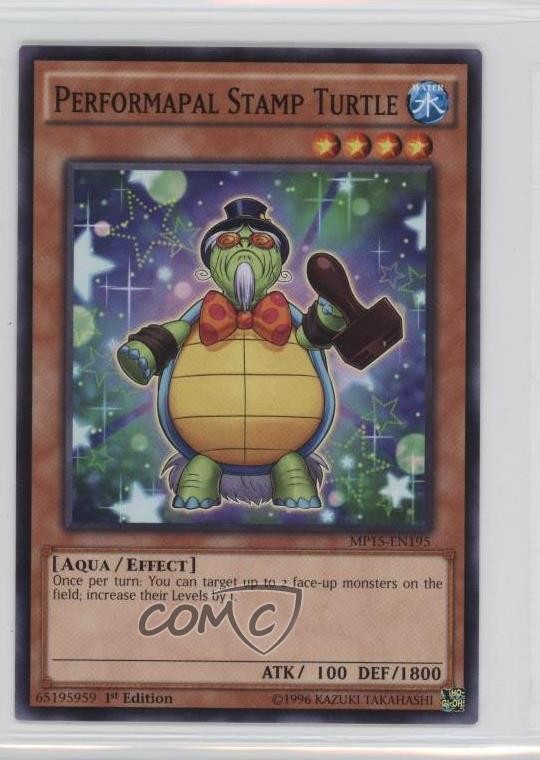 This Performapal Stamp Turtle is a fantastic find for Yu-Gi-Oh! collectors! The 1st Edition rarity from the 2015 Mega-Tins Mega Pack makes it a standout piece. The card arrived in great condition, and dealing with COMC was smooth and reliable. If you're building a Performapal deck or just love unique cards, this one’s a must-have. Super happy with the purchase—would definitely buy again!