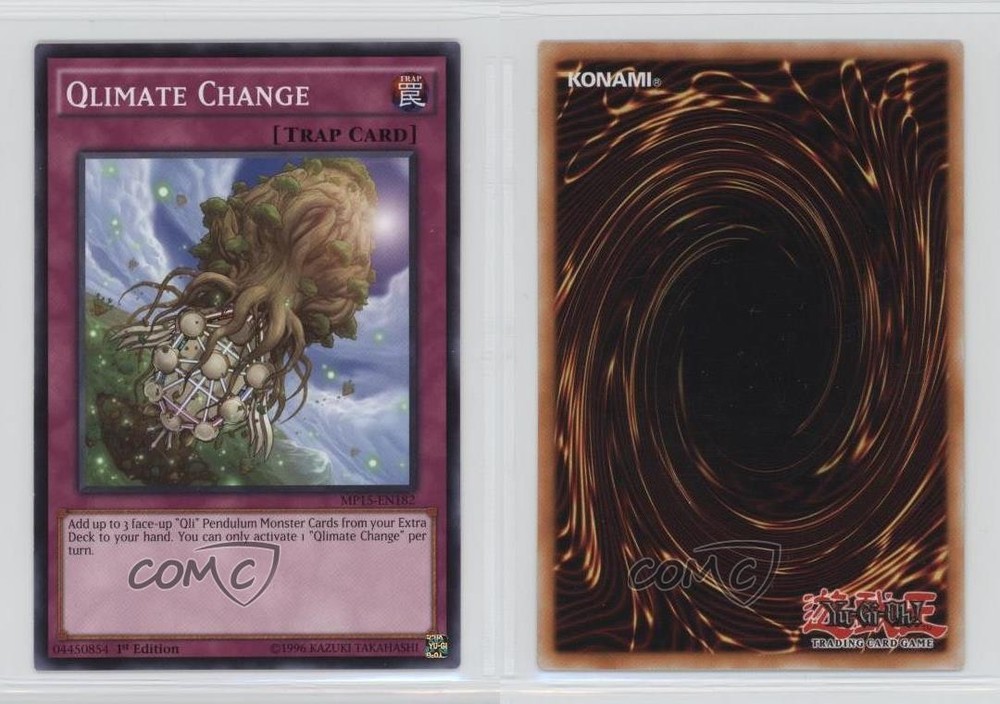 2015 Yu-Gi-Oh! Mega-Tins - Mega Pack [Base] - 1st Edition #MP15-EN182 Qlimate Change COMC Item: 30511212 - YuGiOh Card - Featuring Qlimate Change Search for more: 2015 Yu-Gi-Oh! Mega-Tins Search for more: 2015 Yu-Gi-Oh! Mega-Tins - Mega Pack [Base] - 1st Edition View all of our Listings Auctions Buy It Now About Us Located in the beautiful Pacific Northwest, COMC (Check Out My Cards) is the world's largest consignment service for trading card singles. More than 10,000 people have used our consignment service to list over 50 million trading cards. Find out how we can help you consign your items on eBay by contacting us through eBay messaging. COMC -- "The Safe & Easy Way to Buy & Sell" Raw Condition for Modern Cards Unless otherwise noted, raw modern cards are listed in Near Mint-Mint condition or better. A NM-MT card appears to be Mint at first glance, but upon closer inspection, may exhibit some of the following: minor print defects (e.g. roller marks, print line, dimple), minor scratches, slight edge wear, and slight corner wear. Centering is clearly visible in the images provided and does not factor into our condition assessment. Raw Condition for Vintage Cards Unless otherwise noted, raw vintage cards are listed in Excellent condition or better. An EX card may exhibit some of the following: minor rounding of corners, surface wear, print defects, light scratches, and slight edge wear/chipping. Centering is clearly visible in the images provided and does not factor into our condition assessment. Domestic Shipping Combined shipping for multiple items is available. To receive combined shipping, please ensure all desired items are in your eBay shopping cart before proceeding to checkout. eBay limits orders to 40 items per order. We automatically combine multiple orders placed on the same day. If you place multiple orders on the same day, please contact us to request a refund of applicable shipping costs. Signature confirmation may be required on invoices over $400. All cards are protected and shipped securely. International Shipping COMC offers eBay's International Shipping (EIS) for international orders under $2,500* (see country exceptions below). All duties and import fees are paid at checkout; in the rare event that there are additional import fees upon delivery, these are borne by the buyer. EIS packages route through a shipping hub in Erlanger, KY before shipping to their final destination. Please note that EIS does not allow for combined shipments. The shipping rates are determined by eBay and cannot be adjusted. *Maximum sale price exceptions: Colombia, Kuwait ($2,000); Taiwan ($1,539); Chile, Costa Rica, Guatemala, Honduras, Trinidad and Tobago ($1,000); Antigua and Barbuda, Aruba, Belize, Dominica, Grenada, Philippines, Saint Kitts and Nevis, Saint Lucia, Montserrat, Turks and Caicos Islands ($500); Dominican Republic, El Salvador ($200). Please request a shipping quote through eBay messaging for orders that exceed the maximum sale price supported by eBay's International Shipping. You will be responsible for all duties and import fees for international orders shipped outside the EIS. All cards are protected and shipped securely. Payment COMC does not accept offers on our cards through our eBay storefront. COMC utilizes eBay’s managed payments system. If you are experiencing difficulties making a payment, please contact eBay for assistance. Return Policy Returns are only accepted on the rare occasion the item is not as described. If you are making a return, please initiate the return process through eBay so a mailing label can be provided for you. Prior to listing, our expert team carefully assessed this item to represent it accurately. Please review the description and high-definition images prior to purchasing to ensure this item meets your satisfaction. We welcome you to contact us if you have further questions about this item. Trust and Integrity COMC carefully assesses each item consigned to us to prevent fraudulent items from entering the marketplace. If you believe an item offered on COMC may be fraudulent, please contact us with details so we can investigate the issue. Items we determine are outside our supported items policy may be removed. Last Modified: 6/13/2025 11:14:52 AM PDT