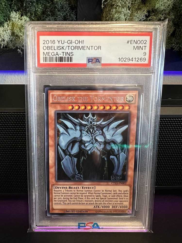 This PSA 9 Obelisk from the 2016 Mega-Tins is a must-have for collectors! The card is in fantastic condition with sharp corners and perfect centering. A great addition to any Yu-Gi-Oh! collection, especially for fans of the iconic God Cards. The slab keeps it protected while showing off its crisp artwork. Highly recommended for serious collectors!