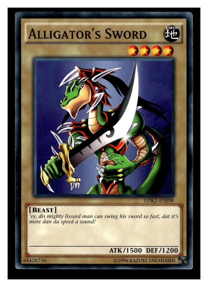 Yu-Gi-Oh! Legendary Decks II Alligator's Sword #LDK2-ENJ08 Be sure to read our reviews to see why we are a top seller and why serious collectors prefer our cards! All of our individual cards receive a sleeve, top loader, and team bag. Cards are shipped in a weather-resistant envelope with an extra seal to prevent USPS equipment from accidentally opening the envelope & damaging the card, ensuring your card arrives safely & quickly. Be sure to check out & follow/subscribe to our eBay store to receive special offers! We carry football, baseball, basketball, hockey, NASCAR, comics, Pokemon, Super Mario Brothers, movie cards, UFC, and more...and we are adding new cards every day!