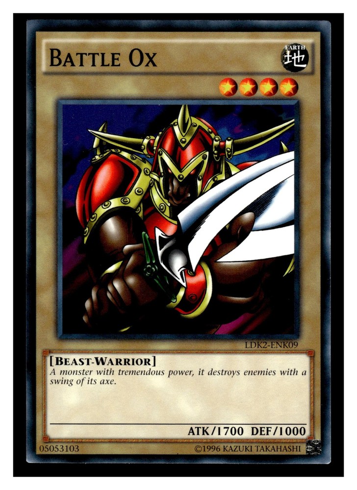 Yu-Gi-Oh! Legendary Decks II Battle Ox #LDK2-ENK09 Be sure to read our reviews to see why we are a top seller and why serious collectors prefer our cards! All of our individual cards receive a sleeve, top loader, and team bag. Cards are shipped in a weather-resistant envelope with an extra seal to prevent USPS equipment from accidentally opening the envelope & damaging the card, ensuring your card arrives safely & quickly. Be sure to check out & follow/subscribe to our eBay store to receive special offers! We carry football, baseball, basketball, hockey, NASCAR, comics, Pokemon, Super Mario Brothers, movie cards, UFC, and more...and we are adding new cards every day!