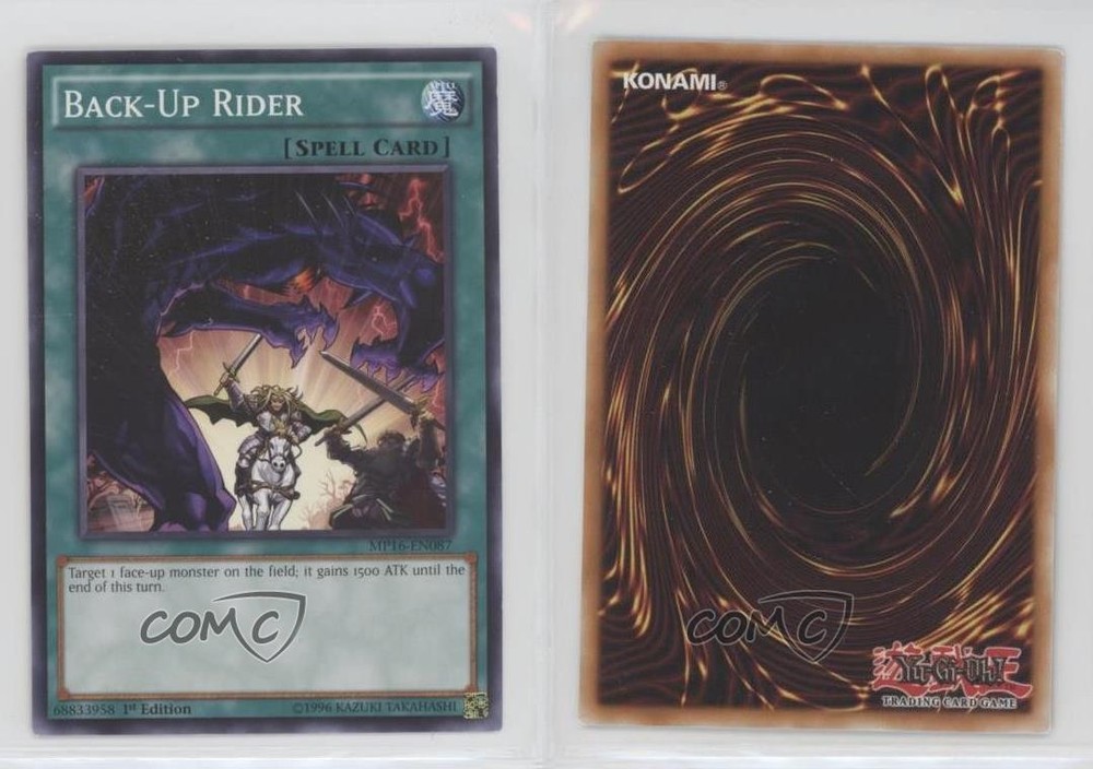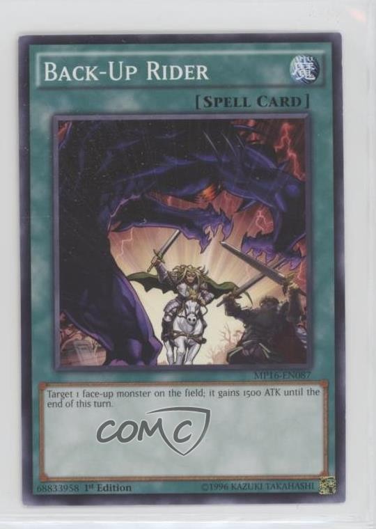 2016 Yu-Gi-Oh! Mega-Tin - Mega Pack [Base] - 1st Edition #MP16-EN087 Back-Up Rider COMC Item: 161672232 - YuGiOh Card - Featuring Back-Up Rider Search for more: 2016 Yu-Gi-Oh! Mega-Tin Search for more: 2016 Yu-Gi-Oh! Mega-Tin - Mega Pack [Base] - 1st Edition View all of our Listings Auctions Buy It Now About Us Located in the beautiful Pacific Northwest, COMC (Check Out My Cards) is the world's largest consignment service for trading card singles. More than 10,000 people have used our consignment service to list over 50 million trading cards. Find out how we can help you consign your items on eBay by contacting us through eBay messaging. COMC -- "The Safe & Easy Way to Buy & Sell" Raw Condition for Modern Cards Unless otherwise noted, raw modern cards are listed in Near Mint-Mint condition or better. A NM-MT card appears to be Mint at first glance, but upon closer inspection, may exhibit some of the following: minor print defects (e.g. roller marks, print line, dimple), minor scratches, slight edge wear, and slight corner wear. Centering is clearly visible in the images provided and does not factor into our condition assessment. Raw Condition for Vintage Cards Unless otherwise noted, raw vintage cards are listed in Excellent condition or better. An EX card may exhibit some of the following: minor rounding of corners, surface wear, print defects, light scratches, and slight edge wear/chipping. Centering is clearly visible in the images provided and does not factor into our condition assessment. Domestic Shipping Combined shipping for multiple items is available. To receive combined shipping, please ensure all desired items are in your eBay shopping cart before proceeding to checkout. eBay limits orders to 40 items per order. We automatically combine multiple orders placed on the same day. If you place multiple orders on the same day, please contact us to request a refund of applicable shipping costs. Signature confirmation may be required on invoices over $400. All cards are protected and shipped securely. International Shipping COMC offers eBay's International Shipping (EIS) for international orders under $2,500* (see country exceptions below). All duties and import fees are paid at checkout; in the rare event that there are additional import fees upon delivery, these are borne by the buyer. EIS packages route through a shipping hub in Erlanger, KY before shipping to their final destination. Please note that EIS does not allow for combined shipments. The shipping rates are determined by eBay and cannot be adjusted. *Maximum sale price exceptions: Colombia, Kuwait ($2,000); Taiwan ($1,539); Chile, Costa Rica, Guatemala, Honduras, Trinidad and Tobago ($1,000); Antigua and Barbuda, Aruba, Belize, Dominica, Grenada, Philippines, Saint Kitts and Nevis, Saint Lucia, Montserrat, Turks and Caicos Islands ($500); Dominican Republic, El Salvador ($200). Please request a shipping quote through eBay messaging for orders that exceed the maximum sale price supported by eBay's International Shipping. You will be responsible for all duties and import fees for international orders shipped outside the EIS. All cards are protected and shipped securely. Payment COMC does not accept offers on our cards through our eBay storefront. COMC utilizes eBay’s managed payments system. If you are experiencing difficulties making a payment, please contact eBay for assistance. Return Policy Returns are only accepted on the rare occasion the item is not as described. If you are making a return, please initiate the return process through eBay so a mailing label can be provided for you. Prior to listing, our expert team carefully assessed this item to represent it accurately. Please review the description and high-definition images prior to purchasing to ensure this item meets your satisfaction. We welcome you to contact us if you have further questions about this item. Trust and Integrity COMC carefully assesses each item consigned to us to prevent fraudulent items from entering the marketplace. If you believe an item offered on COMC may be fraudulent, please contact us with details so we can investigate the issue. Items we determine are outside our supported items policy may be removed. Last Modified: 6/7/2025 11:40:39 PM PDT