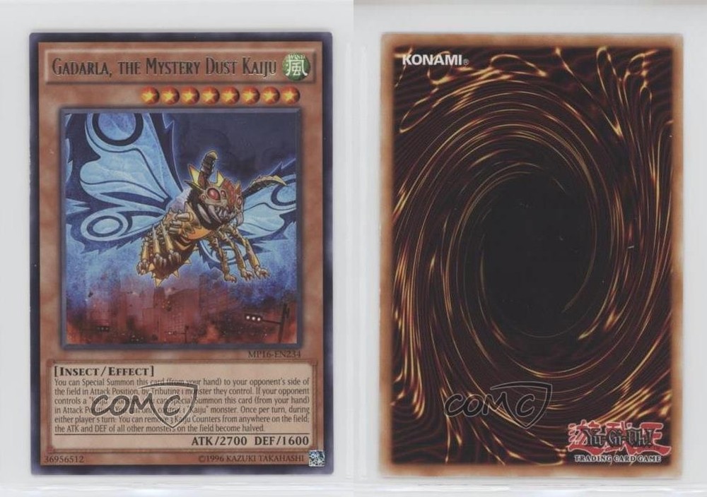 2016 Yu-Gi-Oh! Mega-Tin - Mega Pack [Base] #MP16-EN234 Gadarla, the Mystery Dust Kaiju COMC Item: 110666102 - YuGiOh Card Search for more: 2016 Yu-Gi-Oh! Mega-Tin Search for more: 2016 Yu-Gi-Oh! Mega-Tin - Mega Pack [Base] View all of our Listings Auctions Buy It Now About Us Located in the beautiful Pacific Northwest, COMC (Check Out My Cards) is the world's largest consignment service for trading card singles. More than 10,000 people have used our consignment service to list over 50 million trading cards. Find out how we can help you consign your items on eBay by contacting us through eBay messaging. COMC -- "The Safe & Easy Way to Buy & Sell" Raw Condition for Modern Cards Unless otherwise noted, raw modern cards are listed in Near Mint-Mint condition or better. A NM-MT card appears to be Mint at first glance, but upon closer inspection, may exhibit some of the following: minor print defects (e.g. roller marks, print line, dimple), minor scratches, slight edge wear, and slight corner wear. Centering is clearly visible in the images provided and does not factor into our condition assessment. Raw Condition for Vintage Cards Unless otherwise noted, raw vintage cards are listed in Excellent condition or better. An EX card may exhibit some of the following: minor rounding of corners, surface wear, print defects, light scratches, and slight edge wear/chipping. Centering is clearly visible in the images provided and does not factor into our condition assessment. Domestic Shipping Combined shipping for multiple items is available. To receive combined shipping, please ensure all desired items are in your eBay shopping cart before proceeding to checkout. eBay limits orders to 40 items per order. We automatically combine multiple orders placed on the same day. If you place multiple orders on the same day, please contact us to request a refund of applicable shipping costs. Signature confirmation may be required on invoices over $400. All cards are protected and shipped securely. International Shipping COMC offers eBay's International Shipping (EIS) for international orders under $2,500* (see country exceptions below). All duties and import fees are paid at checkout; in the rare event that there are additional import fees upon delivery, these are borne by the buyer. EIS packages route through a shipping hub in Erlanger, KY before shipping to their final destination. Please note that EIS does not allow for combined shipments. The shipping rates are determined by eBay and cannot be adjusted. *Maximum sale price exceptions: Colombia, Kuwait ($2,000); Taiwan ($1,539); Chile, Costa Rica, Guatemala, Honduras, Trinidad and Tobago ($1,000); Antigua and Barbuda, Aruba, Belize, Dominica, Grenada, Philippines, Saint Kitts and Nevis, Saint Lucia, Montserrat, Turks and Caicos Islands ($500); Dominican Republic, El Salvador ($200). Please request a shipping quote through eBay messaging for orders that exceed the maximum sale price supported by eBay's International Shipping. You will be responsible for all duties and import fees for international orders shipped outside the EIS. All cards are protected and shipped securely. Payment COMC does not accept offers on our cards through our eBay storefront. COMC utilizes eBay’s managed payments system. If you are experiencing difficulties making a payment, please contact eBay for assistance. Return Policy Returns are only accepted on the rare occasion the item is not as described. If you are making a return, please initiate the return process through eBay so a mailing label can be provided for you. Prior to listing, our expert team carefully assessed this item to represent it accurately. Please review the description and high-definition images prior to purchasing to ensure this item meets your satisfaction. We welcome you to contact us if you have further questions about this item. Trust and Integrity COMC carefully assesses each item consigned to us to prevent fraudulent items from entering the marketplace. If you believe an item offered on COMC may be fraudulent, please contact us with details so we can investigate the issue. Items we determine are outside our supported items policy may be removed. Last Modified: 6/9/2025 8:16:22 PM PDT