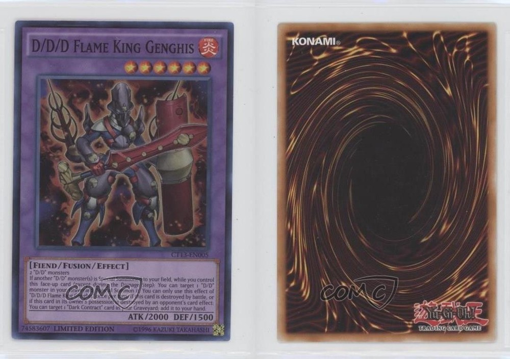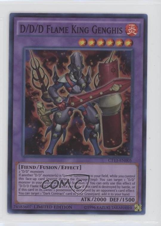 2016 Yu-Gi-Oh! Mega-Tins - Limited Edition [Base] #CT13-EN005 D/D/D Flame King Genghis COMC Item: 190943199 - YuGiOh Card - Featuring D/D/D Flame King Genghis Search for more: 2016 Yu-Gi-Oh! Mega-Tins Search for more: 2016 Yu-Gi-Oh! Mega-Tins - Limited Edition [Base] View all of our Listings Auctions Buy It Now About Us Located in the beautiful Pacific Northwest, COMC (Check Out My Cards) is the world's largest consignment service for trading card singles. More than 10,000 people have used our consignment service to list over 50 million trading cards. Find out how we can help you consign your items on eBay by contacting us through eBay messaging. COMC -- "The Safe & Easy Way to Buy & Sell" Raw Condition for Modern Cards Unless otherwise noted, raw modern cards are listed in Near Mint-Mint condition or better. A NM-MT card appears to be Mint at first glance, but upon closer inspection, may exhibit some of the following: minor print defects (e.g. roller marks, print line, dimple), minor scratches, slight edge wear, and slight corner wear. Centering is clearly visible in the images provided and does not factor into our condition assessment. Raw Condition for Vintage Cards Unless otherwise noted, raw vintage cards are listed in Excellent condition or better. An EX card may exhibit some of the following: minor rounding of corners, surface wear, print defects, light scratches, and slight edge wear/chipping. Centering is clearly visible in the images provided and does not factor into our condition assessment. Domestic Shipping Combined shipping for multiple items is available. To receive combined shipping, please ensure all desired items are in your eBay shopping cart before proceeding to checkout. eBay limits orders to 40 items per order. We automatically combine multiple orders placed on the same day. If you place multiple orders on the same day, please contact us to request a refund of applicable shipping costs. Signature confirmation may be required on invoices over $400. All cards are protected and shipped securely. International Shipping COMC offers eBay's International Shipping (EIS) for international orders under $2,500* (see country exceptions below). All duties and import fees are paid at checkout; in the rare event that there are additional import fees upon delivery, these are borne by the buyer. EIS packages route through a shipping hub in Erlanger, KY before shipping to their final destination. Please note that EIS does not allow for combined shipments. The shipping rates are determined by eBay and cannot be adjusted. *Maximum sale price exceptions: Colombia, Kuwait ($2,000); Taiwan ($1,539); Chile, Costa Rica, Guatemala, Honduras, Trinidad and Tobago ($1,000); Antigua and Barbuda, Aruba, Belize, Dominica, Grenada, Philippines, Saint Kitts and Nevis, Saint Lucia, Montserrat, Turks and Caicos Islands ($500); Dominican Republic, El Salvador ($200). Please request a shipping quote through eBay messaging for orders that exceed the maximum sale price supported by eBay's International Shipping. You will be responsible for all duties and import fees for international orders shipped outside the EIS. All cards are protected and shipped securely. Payment COMC does not accept offers on our cards through our eBay storefront. COMC utilizes eBay’s managed payments system. If you are experiencing difficulties making a payment, please contact eBay for assistance. Return Policy Returns are only accepted on the rare occasion the item is not as described. If you are making a return, please initiate the return process through eBay so a mailing label can be provided for you. Prior to listing, our expert team carefully assessed this item to represent it accurately. Please review the description and high-definition images prior to purchasing to ensure this item meets your satisfaction. We welcome you to contact us if you have further questions about this item. Trust and Integrity COMC carefully assesses each item consigned to us to prevent fraudulent items from entering the marketplace. If you believe an item offered on COMC may be fraudulent, please contact us with details so we can investigate the issue. Items we determine are outside our supported items policy may be removed. Last Modified: 6/25/2025 1:30:17 AM PDT