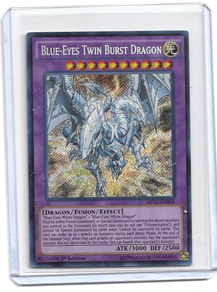 The item in this listing is for a 2017 Mega-Tins Mega Pack Blue-Eyes Twin Burst Dragon #MP17-EN056 1st Edition. This card is in mint condition. It will be only shipped through ground advantage with USPS.The shipping charge will be listed below. If there any questions, please email and a response will be given as soon as possible. If you would like to purchase more than 1 item, I will combine shipping. Each additional item is an additional $0.50 for the shipping. If purchasing more than 1 item, please wait to pay until you have received an invoice. Thank You.