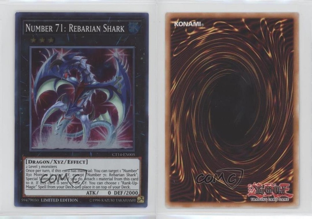 2017 Yu-Gi-Oh! Mega-Tins - Limited Edition [Base] #CT14-EN005 Number 71: Rebarian Shark COMC Item: 128260858 - YuGiOh Card - Featuring Number 71: Rebarian Shark Search for more: 2017 Yu-Gi-Oh! Mega-Tins Search for more: 2017 Yu-Gi-Oh! Mega-Tins - Limited Edition [Base] View all of our Listings Auctions Buy It Now About Us Located in the beautiful Pacific Northwest, COMC (Check Out My Cards) is the world's largest consignment service for trading card singles. More than 10,000 people have used our consignment service to list over 50 million trading cards. Find out how we can help you consign your items on eBay by contacting us through eBay messaging. COMC -- "The Safe & Easy Way to Buy & Sell" Raw Condition for Modern Cards Unless otherwise noted, raw modern cards are listed in Near Mint-Mint condition or better. A NM-MT card appears to be Mint at first glance, but upon closer inspection, may exhibit some of the following: minor print defects (e.g. roller marks, print line, dimple), minor scratches, slight edge wear, and slight corner wear. Centering is clearly visible in the images provided and does not factor into our condition assessment. Raw Condition for Vintage Cards Unless otherwise noted, raw vintage cards are listed in Excellent condition or better. An EX card may exhibit some of the following: minor rounding of corners, surface wear, print defects, light scratches, and slight edge wear/chipping. Centering is clearly visible in the images provided and does not factor into our condition assessment. Domestic Shipping Combined shipping for multiple items is available. To receive combined shipping, please ensure all desired items are in your eBay shopping cart before proceeding to checkout. eBay limits orders to 40 items per order. We automatically combine multiple orders placed on the same day. If you place multiple orders on the same day, please contact us to request a refund of applicable shipping costs. Signature confirmation may be required on invoices over $400. All cards are protected and shipped securely. International Shipping COMC offers eBay's International Shipping (EIS) for international orders under $2,500* (see country exceptions below). All duties and import fees are paid at checkout; in the rare event that there are additional import fees upon delivery, these are borne by the buyer. EIS packages route through a shipping hub in Erlanger, KY before shipping to their final destination. Please note that EIS does not allow for combined shipments. The shipping rates are determined by eBay and cannot be adjusted. *Maximum sale price exceptions: Colombia, Kuwait ($2,000); Taiwan ($1,539); Chile, Costa Rica, Guatemala, Honduras, Trinidad and Tobago ($1,000); Antigua and Barbuda, Aruba, Belize, Dominica, Grenada, Philippines, Saint Kitts and Nevis, Saint Lucia, Montserrat, Turks and Caicos Islands ($500); Dominican Republic, El Salvador ($200). Please request a shipping quote through eBay messaging for orders that exceed the maximum sale price supported by eBay's International Shipping. You will be responsible for all duties and import fees for international orders shipped outside the EIS. All cards are protected and shipped securely. Payment COMC does not accept offers on our cards through our eBay storefront. COMC utilizes eBay’s managed payments system. If you are experiencing difficulties making a payment, please contact eBay for assistance. Return Policy Returns are only accepted on the rare occasion the item is not as described. If you are making a return, please initiate the return process through eBay so a mailing label can be provided for you. Prior to listing, our expert team carefully assessed this item to represent it accurately. Please review the description and high-definition images prior to purchasing to ensure this item meets your satisfaction. We welcome you to contact us if you have further questions about this item. Trust and Integrity COMC carefully assesses each item consigned to us to prevent fraudulent items from entering the marketplace. If you believe an item offered on COMC may be fraudulent, please contact us with details so we can investigate the issue. Items we determine are outside our supported items policy may be removed. Last Modified: 5/14/2025 9:56:53 PM PDT
