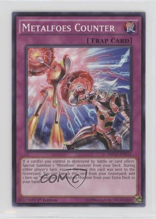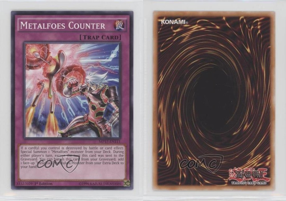2017 Yu-Gi-Oh! Mega-Tins - Mega Pack [Base] - 1st Edition #MP17-EN111 Metalfoes Counter COMC Item: 168294390 - YuGiOh Card Search for more: 2017 Yu-Gi-Oh! Mega-Tins Search for more: 2017 Yu-Gi-Oh! Mega-Tins - Mega Pack [Base] - 1st Edition View all of our Listings Auctions Buy It Now About Us Located in the beautiful Pacific Northwest, COMC (Check Out My Cards) is the world's largest consignment service for trading card singles. More than 10,000 people have used our consignment service to list over 50 million trading cards. Find out how we can help you consign your items on eBay by contacting us through eBay messaging. COMC -- "The Safe & Easy Way to Buy & Sell" Raw Condition for Modern Cards Unless otherwise noted, raw modern cards are listed in Near Mint-Mint condition or better. A NM-MT card appears to be Mint at first glance, but upon closer inspection, may exhibit some of the following: minor print defects (e.g. roller marks, print line, dimple), minor scratches, slight edge wear, and slight corner wear. Centering is clearly visible in the images provided and does not factor into our condition assessment. Raw Condition for Vintage Cards Unless otherwise noted, raw vintage cards are listed in Excellent condition or better. An EX card may exhibit some of the following: minor rounding of corners, surface wear, print defects, light scratches, and slight edge wear/chipping. Centering is clearly visible in the images provided and does not factor into our condition assessment. Domestic Shipping Combined shipping for multiple items is available. To receive combined shipping, please ensure all desired items are in your eBay shopping cart before proceeding to checkout. eBay limits orders to 40 items per order. We automatically combine multiple orders placed on the same day. If you place multiple orders on the same day, please contact us to request a refund of applicable shipping costs. Signature confirmation may be required on invoices over $400. All cards are protected and shipped securely. International Shipping COMC offers eBay's International Shipping (EIS) for international orders under $2,500* (see country exceptions below). All duties and import fees are paid at checkout; in the rare event that there are additional import fees upon delivery, these are borne by the buyer. EIS packages route through a shipping hub in Erlanger, KY before shipping to their final destination. Please note that EIS does not allow for combined shipments. The shipping rates are determined by eBay and cannot be adjusted. *Maximum sale price exceptions: Colombia, Kuwait ($2,000); Taiwan ($1,539); Chile, Costa Rica, Guatemala, Honduras, Trinidad and Tobago ($1,000); Antigua and Barbuda, Aruba, Belize, Dominica, Grenada, Philippines, Saint Kitts and Nevis, Saint Lucia, Montserrat, Turks and Caicos Islands ($500); Dominican Republic, El Salvador ($200). Please request a shipping quote through eBay messaging for orders that exceed the maximum sale price supported by eBay's International Shipping. You will be responsible for all duties and import fees for international orders shipped outside the EIS. All cards are protected and shipped securely. Payment COMC does not accept offers on our cards through our eBay storefront. COMC utilizes eBay’s managed payments system. If you are experiencing difficulties making a payment, please contact eBay for assistance. Return Policy Returns are only accepted on the rare occasion the item is not as described. If you are making a return, please initiate the return process through eBay so a mailing label can be provided for you. Prior to listing, our expert team carefully assessed this item to represent it accurately. Please review the description and high-definition images prior to purchasing to ensure this item meets your satisfaction. We welcome you to contact us if you have further questions about this item. Trust and Integrity COMC carefully assesses each item consigned to us to prevent fraudulent items from entering the marketplace. If you believe an item offered on COMC may be fraudulent, please contact us with details so we can investigate the issue. Items we determine are outside our supported items policy may be removed. Last Modified: 5/14/2025 10:28:14 PM PDT