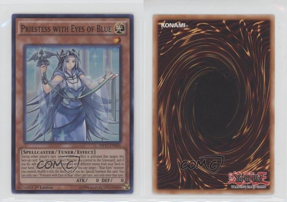 2017 Yu-Gi-Oh! Mega-Tins - Mega Pack [Base] - 1st Edition #MP17-EN055 Priestess with Eyes of Blue COMC Item: 128261110 - YuGiOh Card - Featuring Priestess With Eyes of Blue Search for more: 2017 Yu-Gi-Oh! Mega-Tins Search for more: 2017 Yu-Gi-Oh! Mega-Tins - Mega Pack [Base] - 1st Edition View all of our Listings Auctions Buy It Now About Us Located in the beautiful Pacific Northwest, COMC (Check Out My Cards) is the world's largest consignment service for trading card singles. More than 10,000 people have used our consignment service to list over 50 million trading cards. Find out how we can help you consign your items on eBay by contacting us through eBay messaging. COMC -- "The Safe & Easy Way to Buy & Sell" Raw Condition for Modern Cards Unless otherwise noted, raw modern cards are listed in Near Mint-Mint condition or better. A NM-MT card appears to be Mint at first glance, but upon closer inspection, may exhibit some of the following: minor print defects (e.g. roller marks, print line, dimple), minor scratches, slight edge wear, and slight corner wear. Centering is clearly visible in the images provided and does not factor into our condition assessment. Raw Condition for Vintage Cards Unless otherwise noted, raw vintage cards are listed in Excellent condition or better. An EX card may exhibit some of the following: minor rounding of corners, surface wear, print defects, light scratches, and slight edge wear/chipping. Centering is clearly visible in the images provided and does not factor into our condition assessment. Domestic Shipping Combined shipping for multiple items is available. To receive combined shipping, please ensure all desired items are in your eBay shopping cart before proceeding to checkout. eBay limits orders to 40 items per order. We automatically combine multiple orders placed on the same day. If you place multiple orders on the same day, please contact us to request a refund of applicable shipping costs. Signature confirmation may be required on invoices over $400. All cards are protected and shipped securely. International Shipping COMC offers eBay's International Shipping (EIS) for international orders under $2,500* (see country exceptions below). All duties and import fees are paid at checkout; in the rare event that there are additional import fees upon delivery, these are borne by the buyer. EIS packages route through a shipping hub in Erlanger, KY before shipping to their final destination. Please note that EIS does not allow for combined shipments. The shipping rates are determined by eBay and cannot be adjusted. *Maximum sale price exceptions: Colombia, Kuwait ($2,000); Taiwan ($1,539); Chile, Costa Rica, Guatemala, Honduras, Trinidad and Tobago ($1,000); Antigua and Barbuda, Aruba, Belize, Dominica, Grenada, Philippines, Saint Kitts and Nevis, Saint Lucia, Montserrat, Turks and Caicos Islands ($500); Dominican Republic, El Salvador ($200). Please request a shipping quote through eBay messaging for orders that exceed the maximum sale price supported by eBay's International Shipping. You will be responsible for all duties and import fees for international orders shipped outside the EIS. All cards are protected and shipped securely. Payment COMC does not accept offers on our cards through our eBay storefront. COMC utilizes eBay’s managed payments system. If you are experiencing difficulties making a payment, please contact eBay for assistance. Return Policy Returns are only accepted on the rare occasion the item is not as described. If you are making a return, please initiate the return process through eBay so a mailing label can be provided for you. Prior to listing, our expert team carefully assessed this item to represent it accurately. Please review the description and high-definition images prior to purchasing to ensure this item meets your satisfaction. We welcome you to contact us if you have further questions about this item. Trust and Integrity COMC carefully assesses each item consigned to us to prevent fraudulent items from entering the marketplace. If you believe an item offered on COMC may be fraudulent, please contact us with details so we can investigate the issue. Items we determine are outside our supported items policy may be removed. Last Modified: 5/7/2025 2:30:06 AM PDT