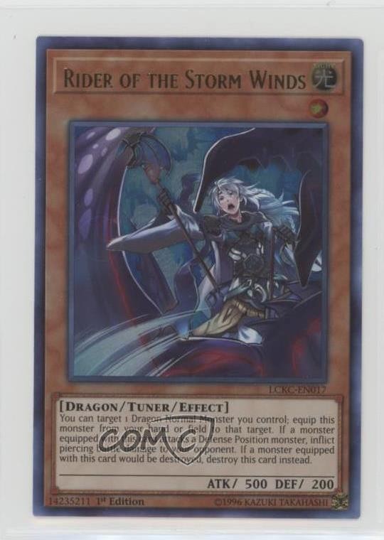 2018 Yu-Gi-Oh! - Legendary Collection Kaiba - [Base] - 1st Edition #LCKC-EN017 Ultra Rare - Rider of the Storm Winds COMC Item: 84918503 - YuGiOh Card - Featuring Rider of the Storm Winds Search for more: 2018 Yu-Gi-Oh! - Legendary Collection Kaiba Search for more: 2018 Yu-Gi-Oh! - Legendary Collection Kaiba - [Base] - 1st Edition View all of our Listings Auctions Buy It Now About Us Located in the beautiful Pacific Northwest, COMC (Check Out My Cards) is the world's largest consignment service for trading card singles. More than 10,000 people have used our consignment service to list over 50 million trading cards. Find out how we can help you consign your items on eBay by contacting us through eBay messaging. COMC -- "The Safe & Easy Way to Buy & Sell" Raw Condition for Modern Cards Unless otherwise noted, raw modern cards are listed in Near Mint-Mint condition or better. A NM-MT card appears to be Mint at first glance, but upon closer inspection, may exhibit some of the following: minor print defects (e.g. roller marks, print line, dimple), minor scratches, slight edge wear, and slight corner wear. Centering is clearly visible in the images provided and does not factor into our condition assessment. Raw Condition for Vintage Cards Unless otherwise noted, raw vintage cards are listed in Excellent condition or better. An EX card may exhibit some of the following: minor rounding of corners, surface wear, print defects, light scratches, and slight edge wear/chipping. Centering is clearly visible in the images provided and does not factor into our condition assessment. Domestic Shipping Combined shipping for multiple items is available. To receive combined shipping, please ensure all desired items are in your eBay shopping cart before proceeding to checkout. eBay limits orders to 40 items per order. We automatically combine multiple orders placed on the same day. If you place multiple orders on the same day, please contact us to request a refund of applicable shipping costs. Signature confirmation may be required on invoices over $400. All cards are protected and shipped securely. International Shipping COMC offers eBay's International Shipping (EIS) for international orders under $2,500* (see country exceptions below). All duties and import fees are paid at checkout; in the rare event that there are additional import fees upon delivery, these are borne by the buyer. EIS packages route through a shipping hub in Erlanger, KY before shipping to their final destination. Please note that EIS does not allow for combined shipments. The shipping rates are determined by eBay and cannot be adjusted. *Maximum sale price exceptions: Colombia, Kuwait ($2,000); Taiwan ($1,539); Chile, Costa Rica, Guatemala, Honduras, Trinidad and Tobago ($1,000); Antigua and Barbuda, Aruba, Belize, Dominica, Grenada, Philippines, Saint Kitts and Nevis, Saint Lucia, Montserrat, Turks and Caicos Islands ($500); Dominican Republic, El Salvador ($200). Please request a shipping quote through eBay messaging for orders that exceed the maximum sale price supported by eBay's International Shipping. You will be responsible for all duties and import fees for international orders shipped outside the EIS. All cards are protected and shipped securely. Payment COMC does not accept offers on our cards through our eBay storefront. COMC utilizes eBay’s managed payments system. If you are experiencing difficulties making a payment, please contact eBay for assistance. Return Policy Returns are only accepted on the rare occasion the item is not as described. If you are making a return, please initiate the return process through eBay so a mailing label can be provided for you. Prior to listing, our expert team carefully assessed this item to represent it accurately. Please review the description and high-definition images prior to purchasing to ensure this item meets your satisfaction. We welcome you to contact us if you have further questions about this item. Trust and Integrity COMC carefully assesses each item consigned to us to prevent fraudulent items from entering the marketplace. If you believe an item offered on COMC may be fraudulent, please contact us with details so we can investigate the issue. Items we determine are outside our supported items policy may be removed. Last Modified: 5/18/2025 8:22:37 AM PDT
