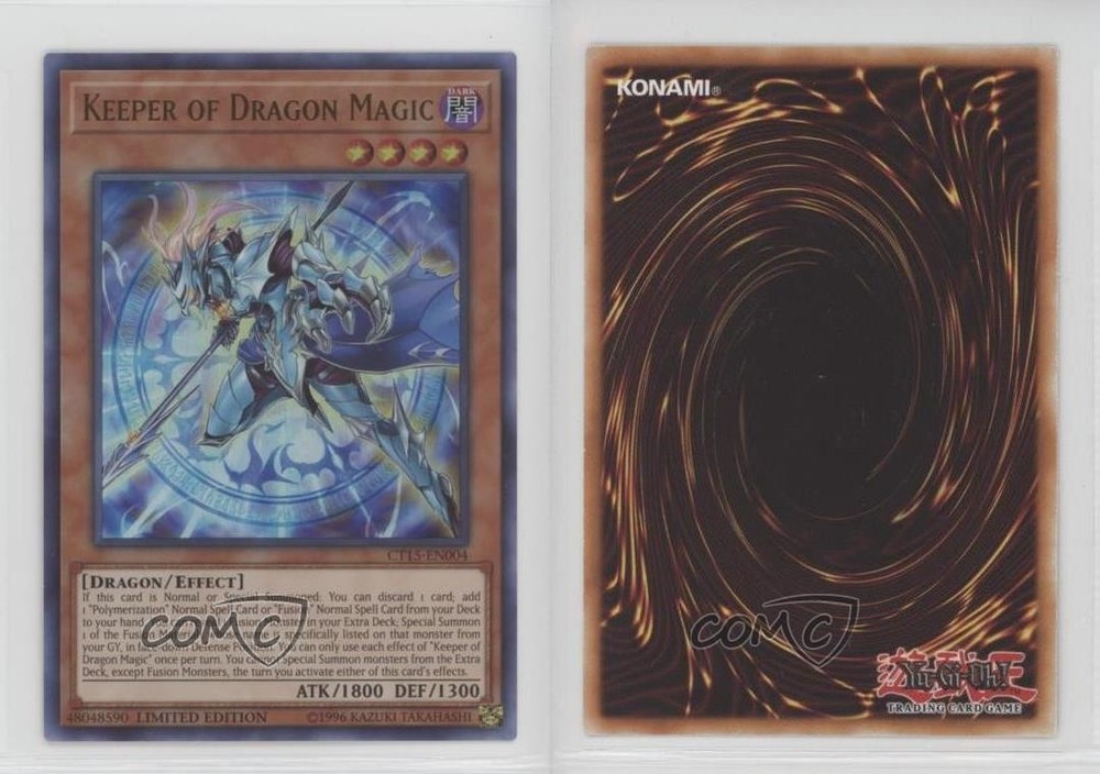 2018 Yu-Gi-Oh! Mega-Tins Jaden Yuki - [Base] - Limited Edition #CT15-EN004 Keeper of Dragon Magic COMC Item: 169670711 - YuGiOh Card Search for more: 2018 Yu-Gi-Oh! Mega-Tins Jaden Yuki Search for more: 2018 Yu-Gi-Oh! Mega-Tins Jaden Yuki - [Base] - Limited Edition View all of our Listings Auctions Buy It Now About Us Located in the beautiful Pacific Northwest, COMC (Check Out My Cards) is the world's largest consignment service for trading card singles. More than 10,000 people have used our consignment service to list over 50 million trading cards. Find out how we can help you consign your items on eBay by contacting us through eBay messaging. COMC -- "The Safe & Easy Way to Buy & Sell" Raw Condition for Modern Cards Unless otherwise noted, raw modern cards are listed in Near Mint-Mint condition or better. A NM-MT card appears to be Mint at first glance, but upon closer inspection, may exhibit some of the following: minor print defects (e.g. roller marks, print line, dimple), minor scratches, slight edge wear, and slight corner wear. Centering is clearly visible in the images provided and does not factor into our condition assessment. Raw Condition for Vintage Cards Unless otherwise noted, raw vintage cards are listed in Excellent condition or better. An EX card may exhibit some of the following: minor rounding of corners, surface wear, print defects, light scratches, and slight edge wear/chipping. Centering is clearly visible in the images provided and does not factor into our condition assessment. Domestic Shipping Combined shipping for multiple items is available. To receive combined shipping, please ensure all desired items are in your eBay shopping cart before proceeding to checkout. eBay limits orders to 40 items per order. We automatically combine multiple orders placed on the same day. If you place multiple orders on the same day, please contact us to request a refund of applicable shipping costs. Signature confirmation may be required on invoices over $400. All cards are protected and shipped securely. International Shipping COMC offers eBay's International Shipping (EIS) for international orders under $2,500* (see country exceptions below). All duties and import fees are paid at checkout; in the rare event that there are additional import fees upon delivery, these are borne by the buyer. EIS packages route through a shipping hub in Erlanger, KY before shipping to their final destination. Please note that EIS does not allow for combined shipments. The shipping rates are determined by eBay and cannot be adjusted. *Maximum sale price exceptions: Colombia, Kuwait ($2,000); Taiwan ($1,539); Chile, Costa Rica, Guatemala, Honduras, Trinidad and Tobago ($1,000); Antigua and Barbuda, Aruba, Belize, Dominica, Grenada, Philippines, Saint Kitts and Nevis, Saint Lucia, Montserrat, Turks and Caicos Islands ($500); Dominican Republic, El Salvador ($200). Please request a shipping quote through eBay messaging for orders that exceed the maximum sale price supported by eBay's International Shipping. You will be responsible for all duties and import fees for international orders shipped outside the EIS. All cards are protected and shipped securely. Payment COMC does not accept offers on our cards through our eBay storefront. COMC utilizes eBay’s managed payments system. If you are experiencing difficulties making a payment, please contact eBay for assistance. Return Policy Returns are only accepted on the rare occasion the item is not as described. If you are making a return, please initiate the return process through eBay so a mailing label can be provided for you. Prior to listing, our expert team carefully assessed this item to represent it accurately. Please review the description and high-definition images prior to purchasing to ensure this item meets your satisfaction. We welcome you to contact us if you have further questions about this item. Trust and Integrity COMC carefully assesses each item consigned to us to prevent fraudulent items from entering the marketplace. If you believe an item offered on COMC may be fraudulent, please contact us with details so we can investigate the issue. Items we determine are outside our supported items policy may be removed. Last Modified: 5/6/2025 11:39:53 AM PDT
