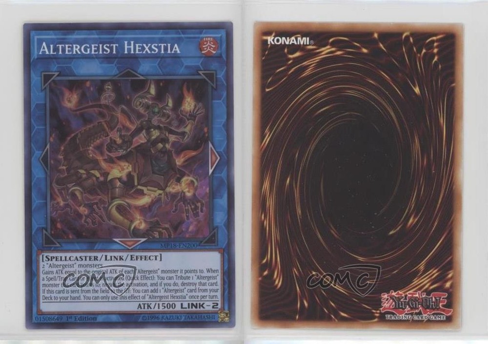 2018 Yu-Gi-Oh! Mega-Tins - Mega Pack [Base] - 1st Edition #MP18-EN200 Altergeist Hexstia COMC Item: 167955004 - YuGiOh Card Search for more: 2018 Yu-Gi-Oh! Mega-Tins Search for more: 2018 Yu-Gi-Oh! Mega-Tins - Mega Pack [Base] - 1st Edition View all of our Listings Auctions Buy It Now About Us Located in the beautiful Pacific Northwest, COMC (Check Out My Cards) is the world's largest consignment service for trading card singles. More than 10,000 people have used our consignment service to list over 50 million trading cards. Find out how we can help you consign your items on eBay by contacting us through eBay messaging. COMC -- "The Safe & Easy Way to Buy & Sell" Raw Condition for Modern Cards Unless otherwise noted, raw modern cards are listed in Near Mint-Mint condition or better. A NM-MT card appears to be Mint at first glance, but upon closer inspection, may exhibit some of the following: minor print defects (e.g. roller marks, print line, dimple), minor scratches, slight edge wear, and slight corner wear. Centering is clearly visible in the images provided and does not factor into our condition assessment. Raw Condition for Vintage Cards Unless otherwise noted, raw vintage cards are listed in Excellent condition or better. An EX card may exhibit some of the following: minor rounding of corners, surface wear, print defects, light scratches, and slight edge wear/chipping. Centering is clearly visible in the images provided and does not factor into our condition assessment. Domestic Shipping Combined shipping for multiple items is available. To receive combined shipping, please ensure all desired items are in your eBay shopping cart before proceeding to checkout. eBay limits orders to 40 items per order. We automatically combine multiple orders placed on the same day. If you place multiple orders on the same day, please contact us to request a refund of applicable shipping costs. Signature confirmation may be required on invoices over $400. All cards are protected and shipped securely. International Shipping COMC offers eBay's International Shipping (EIS) for international orders under $2,500* (see country exceptions below). All duties and import fees are paid at checkout; in the rare event that there are additional import fees upon delivery, these are borne by the buyer. EIS packages route through a shipping hub in Erlanger, KY before shipping to their final destination. Please note that EIS does not allow for combined shipments. The shipping rates are determined by eBay and cannot be adjusted. *Maximum sale price exceptions: Colombia, Kuwait ($2,000); Taiwan ($1,539); Chile, Costa Rica, Guatemala, Honduras, Trinidad and Tobago ($1,000); Antigua and Barbuda, Aruba, Belize, Dominica, Grenada, Philippines, Saint Kitts and Nevis, Saint Lucia, Montserrat, Turks and Caicos Islands ($500); Dominican Republic, El Salvador ($200). Please request a shipping quote through eBay messaging for orders that exceed the maximum sale price supported by eBay's International Shipping. You will be responsible for all duties and import fees for international orders shipped outside the EIS. All cards are protected and shipped securely. Payment COMC does not accept offers on our cards through our eBay storefront. COMC utilizes eBay’s managed payments system. If you are experiencing difficulties making a payment, please contact eBay for assistance. Return Policy Returns are only accepted on the rare occasion the item is not as described. If you are making a return, please initiate the return process through eBay so a mailing label can be provided for you. Prior to listing, our expert team carefully assessed this item to represent it accurately. Please review the description and high-definition images prior to purchasing to ensure this item meets your satisfaction. We welcome you to contact us if you have further questions about this item. Trust and Integrity COMC carefully assesses each item consigned to us to prevent fraudulent items from entering the marketplace. If you believe an item offered on COMC may be fraudulent, please contact us with details so we can investigate the issue. Items we determine are outside our supported items policy may be removed. Last Modified: 5/14/2025 6:20:25 AM PDT