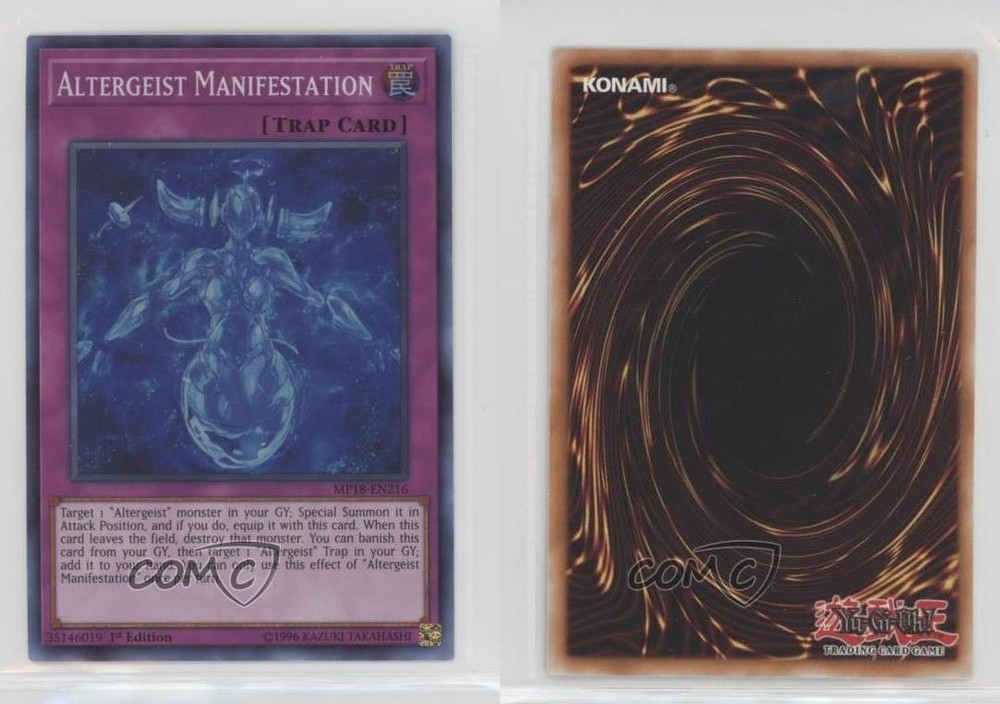2018 Yu-Gi-Oh! Mega-Tins - Mega Pack [Base] - 1st Edition #MP18-EN216 Altergeist Manifestation COMC Item: 167955049 - YuGiOh Card Search for more: 2018 Yu-Gi-Oh! Mega-Tins Search for more: 2018 Yu-Gi-Oh! Mega-Tins - Mega Pack [Base] - 1st Edition View all of our Listings Auctions Buy It Now About Us Located in the beautiful Pacific Northwest, COMC (Check Out My Cards) is the world's largest consignment service for trading card singles. More than 10,000 people have used our consignment service to list over 50 million trading cards. Find out how we can help you consign your items on eBay by contacting us through eBay messaging. COMC -- "The Safe & Easy Way to Buy & Sell" Raw Condition for Modern Cards Unless otherwise noted, raw modern cards are listed in Near Mint-Mint condition or better. A NM-MT card appears to be Mint at first glance, but upon closer inspection, may exhibit some of the following: minor print defects (e.g. roller marks, print line, dimple), minor scratches, slight edge wear, and slight corner wear. Centering is clearly visible in the images provided and does not factor into our condition assessment. Raw Condition for Vintage Cards Unless otherwise noted, raw vintage cards are listed in Excellent condition or better. An EX card may exhibit some of the following: minor rounding of corners, surface wear, print defects, light scratches, and slight edge wear/chipping. Centering is clearly visible in the images provided and does not factor into our condition assessment. Domestic Shipping Combined shipping for multiple items is available. To receive combined shipping, please ensure all desired items are in your eBay shopping cart before proceeding to checkout. eBay limits orders to 40 items per order. We automatically combine multiple orders placed on the same day. If you place multiple orders on the same day, please contact us to request a refund of applicable shipping costs. Signature confirmation may be required on invoices over $400. All cards are protected and shipped securely. International Shipping COMC offers eBay's International Shipping (EIS) for international orders under $2,500* (see country exceptions below). All duties and import fees are paid at checkout; in the rare event that there are additional import fees upon delivery, these are borne by the buyer. EIS packages route through a shipping hub in Erlanger, KY before shipping to their final destination. Please note that EIS does not allow for combined shipments. The shipping rates are determined by eBay and cannot be adjusted. *Maximum sale price exceptions: Colombia, Kuwait ($2,000); Taiwan ($1,539); Chile, Costa Rica, Guatemala, Honduras, Trinidad and Tobago ($1,000); Antigua and Barbuda, Aruba, Belize, Dominica, Grenada, Philippines, Saint Kitts and Nevis, Saint Lucia, Montserrat, Turks and Caicos Islands ($500); Dominican Republic, El Salvador ($200). Please request a shipping quote through eBay messaging for orders that exceed the maximum sale price supported by eBay's International Shipping. You will be responsible for all duties and import fees for international orders shipped outside the EIS. All cards are protected and shipped securely. Payment COMC does not accept offers on our cards through our eBay storefront. COMC utilizes eBay’s managed payments system. If you are experiencing difficulties making a payment, please contact eBay for assistance. Return Policy Returns are only accepted on the rare occasion the item is not as described. If you are making a return, please initiate the return process through eBay so a mailing label can be provided for you. Prior to listing, our expert team carefully assessed this item to represent it accurately. Please review the description and high-definition images prior to purchasing to ensure this item meets your satisfaction. We welcome you to contact us if you have further questions about this item. Trust and Integrity COMC carefully assesses each item consigned to us to prevent fraudulent items from entering the marketplace. If you believe an item offered on COMC may be fraudulent, please contact us with details so we can investigate the issue. Items we determine are outside our supported items policy may be removed. Last Modified: 6/20/2025 11:51:26 PM PDT