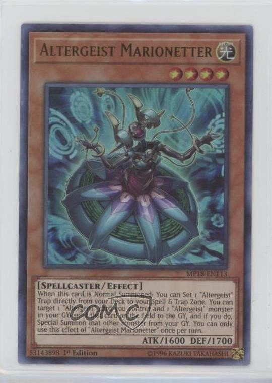 2018 Yu-Gi-Oh! Mega-Tins - Mega Pack [Base] - 1st Edition #MP18-EN113 Altergeist Marionetter COMC Item: 117591276 - YuGiOh Card - Featuring Altergeist Marionetter Search for more: 2018 Yu-Gi-Oh! Mega-Tins Search for more: 2018 Yu-Gi-Oh! Mega-Tins - Mega Pack [Base] - 1st Edition View all of our Listings Auctions Buy It Now About Us Located in the beautiful Pacific Northwest, COMC (Check Out My Cards) is the world's largest consignment service for trading card singles. More than 10,000 people have used our consignment service to list over 50 million trading cards. Find out how we can help you consign your items on eBay by contacting us through eBay messaging. COMC -- "The Safe & Easy Way to Buy & Sell" Raw Condition for Modern Cards Unless otherwise noted, raw modern cards are listed in Near Mint-Mint condition or better. A NM-MT card appears to be Mint at first glance, but upon closer inspection, may exhibit some of the following: minor print defects (e.g. roller marks, print line, dimple), minor scratches, slight edge wear, and slight corner wear. Centering is clearly visible in the images provided and does not factor into our condition assessment. Raw Condition for Vintage Cards Unless otherwise noted, raw vintage cards are listed in Excellent condition or better. An EX card may exhibit some of the following: minor rounding of corners, surface wear, print defects, light scratches, and slight edge wear/chipping. Centering is clearly visible in the images provided and does not factor into our condition assessment. Domestic Shipping Combined shipping for multiple items is available. To receive combined shipping, please ensure all desired items are in your eBay shopping cart before proceeding to checkout. eBay limits orders to 40 items per order. We automatically combine multiple orders placed on the same day. If you place multiple orders on the same day, please contact us to request a refund of applicable shipping costs. Signature confirmation may be required on invoices over $400. All cards are protected and shipped securely. International Shipping COMC offers eBay's International Shipping (EIS) for international orders under $2,500* (see country exceptions below). All duties and import fees are paid at checkout; in the rare event that there are additional import fees upon delivery, these are borne by the buyer. EIS packages route through a shipping hub in Erlanger, KY before shipping to their final destination. Please note that EIS does not allow for combined shipments. The shipping rates are determined by eBay and cannot be adjusted. *Maximum sale price exceptions: Colombia, Kuwait ($2,000); Taiwan ($1,539); Chile, Costa Rica, Guatemala, Honduras, Trinidad and Tobago ($1,000); Antigua and Barbuda, Aruba, Belize, Dominica, Grenada, Philippines, Saint Kitts and Nevis, Saint Lucia, Montserrat, Turks and Caicos Islands ($500); Dominican Republic, El Salvador ($200). Please request a shipping quote through eBay messaging for orders that exceed the maximum sale price supported by eBay's International Shipping. You will be responsible for all duties and import fees for international orders shipped outside the EIS. All cards are protected and shipped securely. Payment COMC does not accept offers on our cards through our eBay storefront. COMC utilizes eBay’s managed payments system. If you are experiencing difficulties making a payment, please contact eBay for assistance. Return Policy Returns are only accepted on the rare occasion the item is not as described. If you are making a return, please initiate the return process through eBay so a mailing label can be provided for you. Prior to listing, our expert team carefully assessed this item to represent it accurately. Please review the description and high-definition images prior to purchasing to ensure this item meets your satisfaction. We welcome you to contact us if you have further questions about this item. Trust and Integrity COMC carefully assesses each item consigned to us to prevent fraudulent items from entering the marketplace. If you believe an item offered on COMC may be fraudulent, please contact us with details so we can investigate the issue. Items we determine are outside our supported items policy may be removed. Last Modified: 5/18/2025 7:36:37 PM PDT