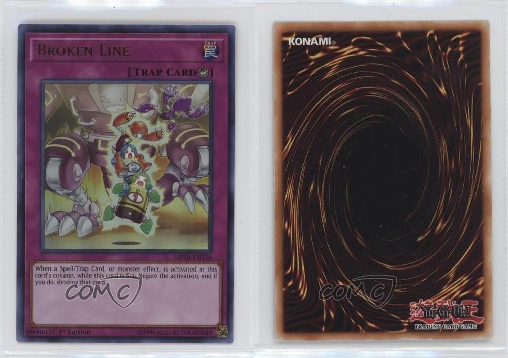 2018 Yu-Gi-Oh! Mega-Tins - Mega Pack [Base] - 1st Edition #MP18-EN156 Broken Line COMC Item: 175237358 - YuGiOh Card Search for more: 2018 Yu-Gi-Oh! Mega-Tins Search for more: 2018 Yu-Gi-Oh! Mega-Tins - Mega Pack [Base] - 1st Edition View all of our Listings Auctions Buy It Now About Us Located in the beautiful Pacific Northwest, COMC (Check Out My Cards) is the world's largest consignment service for trading card singles. More than 10,000 people have used our consignment service to list over 50 million trading cards. Find out how we can help you consign your items on eBay by contacting us through eBay messaging. COMC -- "The Safe & Easy Way to Buy & Sell" Raw Condition for Modern Cards Unless otherwise noted, raw modern cards are listed in Near Mint-Mint condition or better. A NM-MT card appears to be Mint at first glance, but upon closer inspection, may exhibit some of the following: minor print defects (e.g. roller marks, print line, dimple), minor scratches, slight edge wear, and slight corner wear. Centering is clearly visible in the images provided and does not factor into our condition assessment. Raw Condition for Vintage Cards Unless otherwise noted, raw vintage cards are listed in Excellent condition or better. An EX card may exhibit some of the following: minor rounding of corners, surface wear, print defects, light scratches, and slight edge wear/chipping. Centering is clearly visible in the images provided and does not factor into our condition assessment. Domestic Shipping Combined shipping for multiple items is available. To receive combined shipping, please ensure all desired items are in your eBay shopping cart before proceeding to checkout. eBay limits orders to 40 items per order. We automatically combine multiple orders placed on the same day. If you place multiple orders on the same day, please contact us to request a refund of applicable shipping costs. Signature confirmation may be required on invoices over $400. All cards are protected and shipped securely. International Shipping COMC offers eBay's International Shipping (EIS) for international orders under $2,500* (see country exceptions below). All duties and import fees are paid at checkout; in the rare event that there are additional import fees upon delivery, these are borne by the buyer. EIS packages route through a shipping hub in Erlanger, KY before shipping to their final destination. Please note that EIS does not allow for combined shipments. The shipping rates are determined by eBay and cannot be adjusted. *Maximum sale price exceptions: Colombia, Kuwait ($2,000); Taiwan ($1,539); Chile, Costa Rica, Guatemala, Honduras, Trinidad and Tobago ($1,000); Antigua and Barbuda, Aruba, Belize, Dominica, Grenada, Philippines, Saint Kitts and Nevis, Saint Lucia, Montserrat, Turks and Caicos Islands ($500); Dominican Republic, El Salvador ($200). Please request a shipping quote through eBay messaging for orders that exceed the maximum sale price supported by eBay's International Shipping. You will be responsible for all duties and import fees for international orders shipped outside the EIS. All cards are protected and shipped securely. Payment COMC does not accept offers on our cards through our eBay storefront. COMC utilizes eBay’s managed payments system. If you are experiencing difficulties making a payment, please contact eBay for assistance. Return Policy Returns are only accepted on the rare occasion the item is not as described. If you are making a return, please initiate the return process through eBay so a mailing label can be provided for you. Prior to listing, our expert team carefully assessed this item to represent it accurately. Please review the description and high-definition images prior to purchasing to ensure this item meets your satisfaction. We welcome you to contact us if you have further questions about this item. Trust and Integrity COMC carefully assesses each item consigned to us to prevent fraudulent items from entering the marketplace. If you believe an item offered on COMC may be fraudulent, please contact us with details so we can investigate the issue. Items we determine are outside our supported items policy may be removed. Last Modified: 5/6/2025 6:57:48 AM PDT