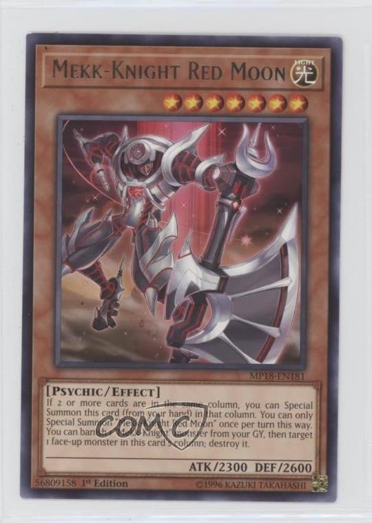 2018 Yu-Gi-Oh! Mega-Tins - Mega Pack [Base] - 1st Edition #MP18-EN181 Mekk-Knight Red Moon COMC Item: 218021584 - YuGiOh Card - Featuring Mekk-Knight Red Moon Search for more: 2018 Yu-Gi-Oh! Mega-Tins Search for more: 2018 Yu-Gi-Oh! Mega-Tins - Mega Pack [Base] - 1st Edition View all of our Listings Auctions Buy It Now About Us Located in the beautiful Pacific Northwest, COMC (Check Out My Cards) is the world's largest consignment service for trading card singles. More than 10,000 people have used our consignment service to list over 50 million trading cards. Find out how we can help you consign your items on eBay by contacting us through eBay messaging. COMC -- "The Safe & Easy Way to Buy & Sell" Raw Condition for Modern Cards Unless otherwise noted, raw modern cards are listed in Near Mint-Mint condition or better. A NM-MT card appears to be Mint at first glance, but upon closer inspection, may exhibit some of the following: minor print defects (e.g. roller marks, print line, dimple), minor scratches, slight edge wear, and slight corner wear. Centering is clearly visible in the images provided and does not factor into our condition assessment. Raw Condition for Vintage Cards Unless otherwise noted, raw vintage cards are listed in Excellent condition or better. An EX card may exhibit some of the following: minor rounding of corners, surface wear, print defects, light scratches, and slight edge wear/chipping. Centering is clearly visible in the images provided and does not factor into our condition assessment. Domestic Shipping Combined shipping for multiple items is available. To receive combined shipping, please ensure all desired items are in your eBay shopping cart before proceeding to checkout. eBay limits orders to 40 items per order. We automatically combine multiple orders placed on the same day. If you place multiple orders on the same day, please contact us to request a refund of applicable shipping costs. Signature confirmation may be required on invoices over $400. All cards are protected and shipped securely. International Shipping COMC offers eBay's International Shipping (EIS) for international orders under $2,500* (see country exceptions below). All duties and import fees are paid at checkout; in the rare event that there are additional import fees upon delivery, these are borne by the buyer. EIS packages route through a shipping hub in Erlanger, KY before shipping to their final destination. Please note that EIS does not allow for combined shipments. The shipping rates are determined by eBay and cannot be adjusted. *Maximum sale price exceptions: Colombia, Kuwait ($2,000); Taiwan ($1,539); Chile, Costa Rica, Guatemala, Honduras, Trinidad and Tobago ($1,000); Antigua and Barbuda, Aruba, Belize, Dominica, Grenada, Philippines, Saint Kitts and Nevis, Saint Lucia, Montserrat, Turks and Caicos Islands ($500); Dominican Republic, El Salvador ($200). Please request a shipping quote through eBay messaging for orders that exceed the maximum sale price supported by eBay's International Shipping. You will be responsible for all duties and import fees for international orders shipped outside the EIS. All cards are protected and shipped securely. Payment COMC does not accept offers on our cards through our eBay storefront. COMC utilizes eBay’s managed payments system. If you are experiencing difficulties making a payment, please contact eBay for assistance. Return Policy Returns are only accepted on the rare occasion the item is not as described. If you are making a return, please initiate the return process through eBay so a mailing label can be provided for you. Prior to listing, our expert team carefully assessed this item to represent it accurately. Please review the description and high-definition images prior to purchasing to ensure this item meets your satisfaction. We welcome you to contact us if you have further questions about this item. Trust and Integrity COMC carefully assesses each item consigned to us to prevent fraudulent items from entering the marketplace. If you believe an item offered on COMC may be fraudulent, please contact us with details so we can investigate the issue. Items we determine are outside our supported items policy may be removed. Last Modified: 5/11/2025 9:07:28 PM PDT