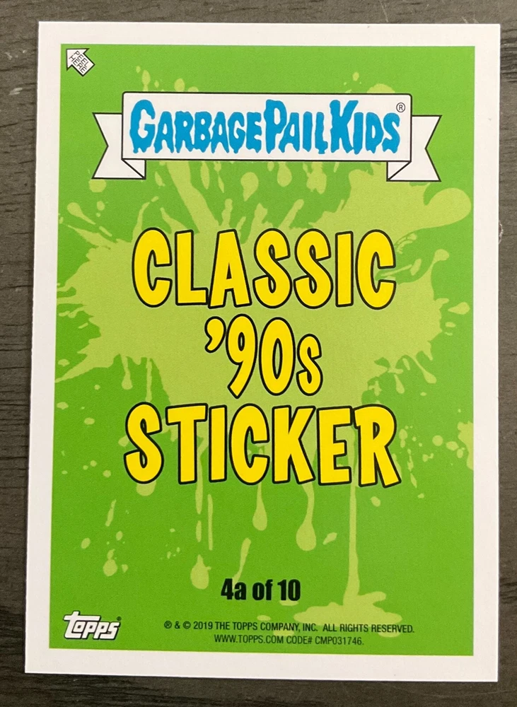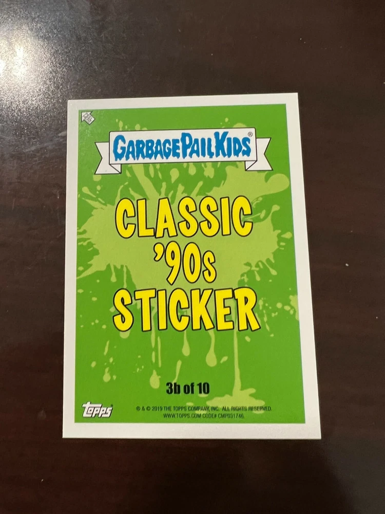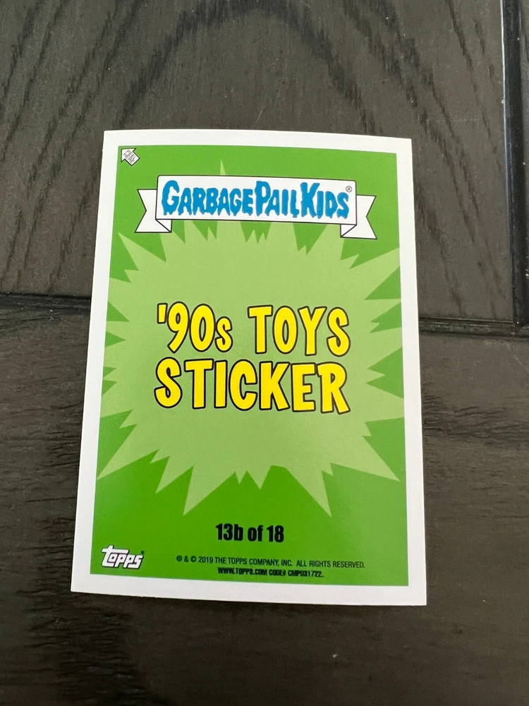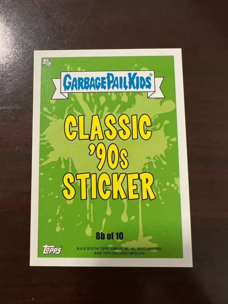 Thank you so much for looking it means a lot to us! 2019 Garbage Pail Kids WE HATE THE 90's "The Garbage Pail Kids “We Hate the ‘90s” edition features all-new art, parodying cartoons, toys, TV, films, video games, fashion & more!" Pick A Single Card Listing Please make sure to add all items to cart to combine ship Save us as your favorite seller to get coupons and discounts! **The images of empty pack shown are for illustration purposes** Shipping To save you the most money we use eBay envelope Service And we ship out everyday even on weekends. We have the listing set at 3-4 days handling time to help with it getting scanned at USPS Generally I would say most everything is delivered with in a week, Some cases can take longer but we will always make sure you are taken care of if a mail piece gets lost (which is rare) On items Over Twenty dollars or more then 10 Singles your order will go out Ground Advantage Condition We Strive to send out the very best cards we have and new product is added daily please ask any questions prior to buying *** Please note that some series for example OS 1-15 Series GPK, 70s Wacky's 70s Star wars will not have prefect cards *** we do weed out as many as we can, of course if you are not happy we will 100% take care of you Returns We offer 30 day returns. Please make sure you use the ebay return system or contact us if you need to return an item. We require that labels are still attached if returning. If this label is removed, we may refuse the return. Any returns after the 30 day and before 60 days will qualify for exchanges only. Anything after 60 days may not be returned.
