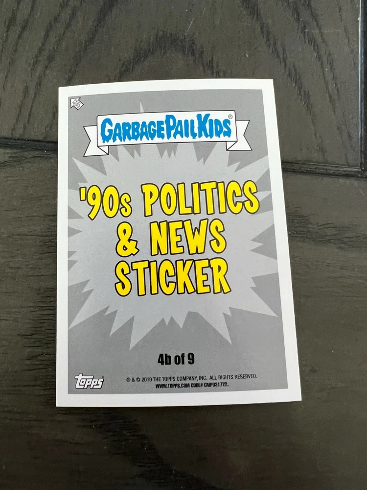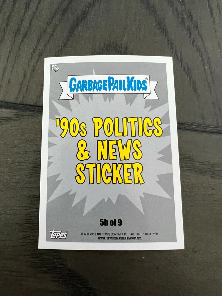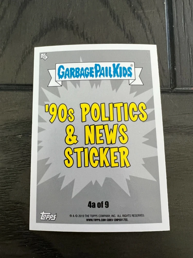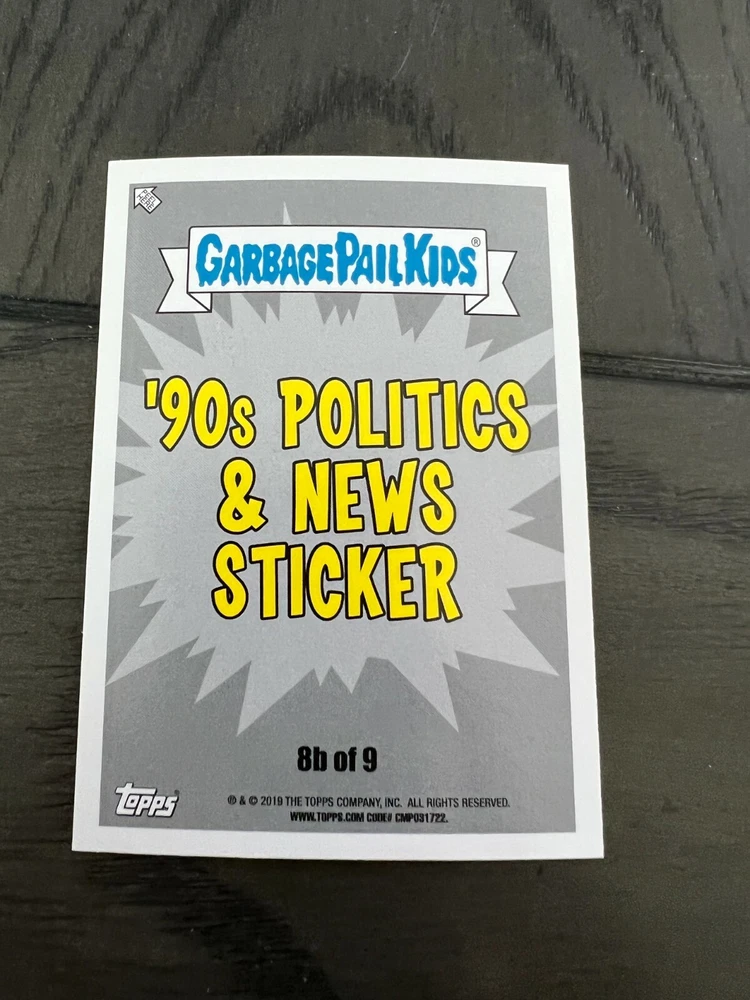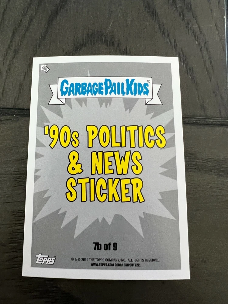 Thank you so much for looking it means a lot to us! 2019 Garbage Pail Kids WE HATE THE 90's "The Garbage Pail Kids “We Hate the ‘90s” edition features all-new art, parodying cartoons, toys, TV, films, video games, fashion & more!" Pick A Single Card Listing Please make sure to add all items to cart to combine ship Save us as your favorite seller to get coupons and discounts! **The images of empty pack shown are for illustration purposes** Shipping To save you the most money we use eBay envelope Service And we ship out everyday even on weekends. We have the listing set at 3-4 days handling time to help with it getting scanned at USPS Generally I would say most everything is delivered with in a week, Some cases can take longer but we will always make sure you are taken care of if a mail piece gets lost (which is rare) On items Over Twenty dollars or more then 10 Singles your order will go out Ground Advantage Condition We Strive to send out the very best cards we have and new product is added daily please ask any questions prior to buying *** Please note that some series for example OS 1-15 Series GPK, 70s Wacky's 70s Star wars will not have prefect cards *** we do weed out as many as we can, of course if you are not happy we will 100% take care of you Returns We offer 30 day returns. Please make sure you use the ebay return system or contact us if you need to return an item. We require that labels are still attached if returning. If this label is removed, we may refuse the return. Any returns after the 30 day and before 60 days will qualify for exchanges only. Anything after 60 days may not be returned.