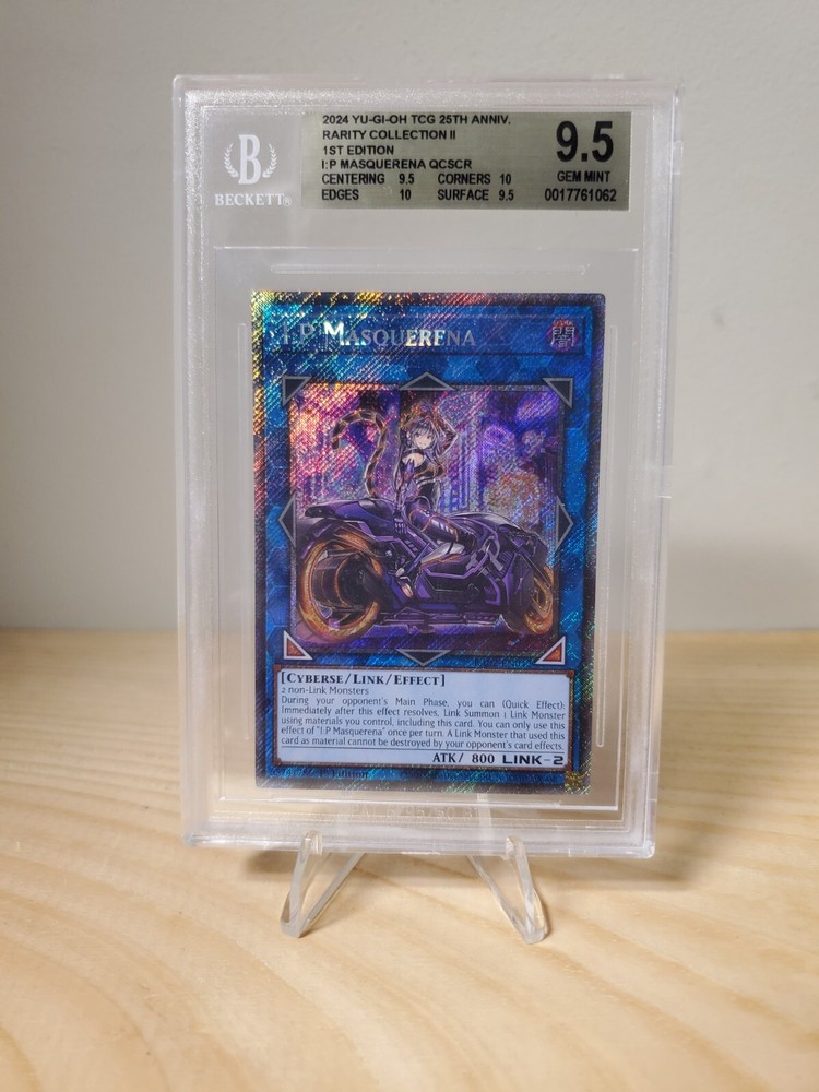 Absolutely stunning card! The alternate art and platinum secret rare finish make this I:P Masquerena pop like nothing else. PSA 10 means it’s flawless, and the 25th Anniversary Rarity Collection adds serious collector value. Arrived safely and looks even better in person—totally worth it for any Yu-Gi-Oh! fan or serious collector. Highly recommended!