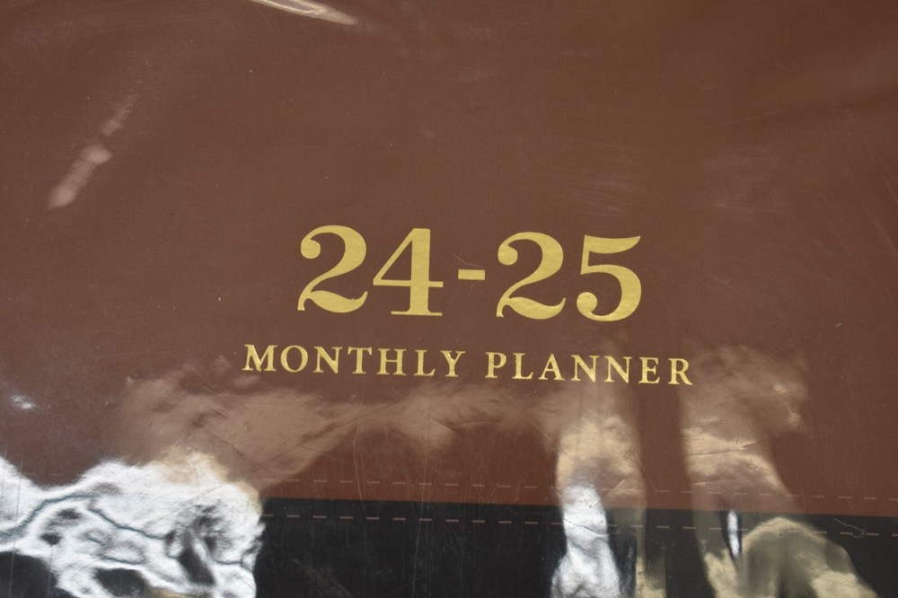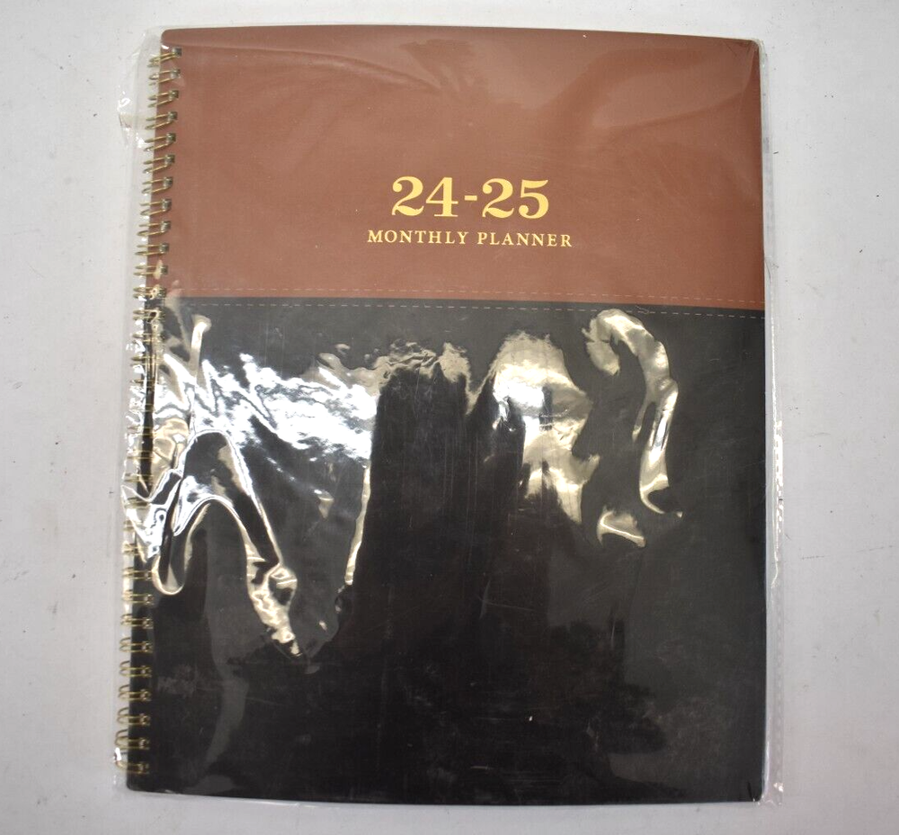 2024-25 Monthly Planner Journal Leather Cover Brown/Black Spiral Bound Notebook Notebook measures 9" x 11" Shipping Policy We will ship almost all items within 1 business day. All items ship from Kansas City MO and take 2-5 days depending on shipping service. On rare occasion, USPS or FedEx may delay a package. Please understand this is out of our control. We use UPS Surepost and USPS Ground Advantage for Most of our packages. USPS Ground and Priority. We have a daily (M-F) USPS pickup at 1030am CST, if your label was created before this time it was picked up same day, if it was created after this time it is on the next day pickup. PLEASE NOTE IMPORTANT: Our pickups are commercial pickups, the truck comes and takes items by the pallet, this means, it will not scan in like it would if you drop at post office. This very often causes a delay in the first scan. The items go directly to Kansas City Distribution Center, most of the time the first scan will happen here, the night of pickup. However, our distribution center has progressively gotten worse at scanning these in. Often, we will see scans that skip KC entirely and don't get scanned in until it reaches buyers local distribution center. We get a lot of messages of people asking if an item has been shipped because no update in tracking, but the answer is yes. We carry all items on hand so if we print a label, it is put on your package and placed in pickup within minutes of label being printed, so based on time scale listed above USPS will have your package. Obviously, this is inconvenient to not have updated tracking the entire process, but most of our packages get delivered within a very timely matter and ones that don't are out of our control. If you need quick guaranteed delivery we would recommend contacting us and upgrading to UPS ground or 2nd day air. UPS Surepost - This is a service where UPS handles the first half of the transportation, they then get it near the delivery location and hand it off to USPS for delivery. USPS will then deliver the item. Your UPS tracking number will work for tracking the package, however once handed off to USPS if you want more frequent updates on UPS webpage when searching tracking you can find the USPS tracking number associated with the package. PLEASE NOTE: If you are in Alaska Hawaii or any other Non Contiguous US location, Surepost if often very delayed, and if needing package soon please contact before purchase for other delivery options. All UPS packages are picked up daily around 4:30pm CST, if your label was created before 4PM your package very likely is on the pickup for that day. UPS won't scan in packages on acceptance until they reach distribution center which is usually overnight the day of pickup. Disclaimer We are not sponsored by or affiliated with the brands associated with the products being sold. Furthermore, there is no guarantee or assumption that we can provide support or offer any warranty on this product after purchase.