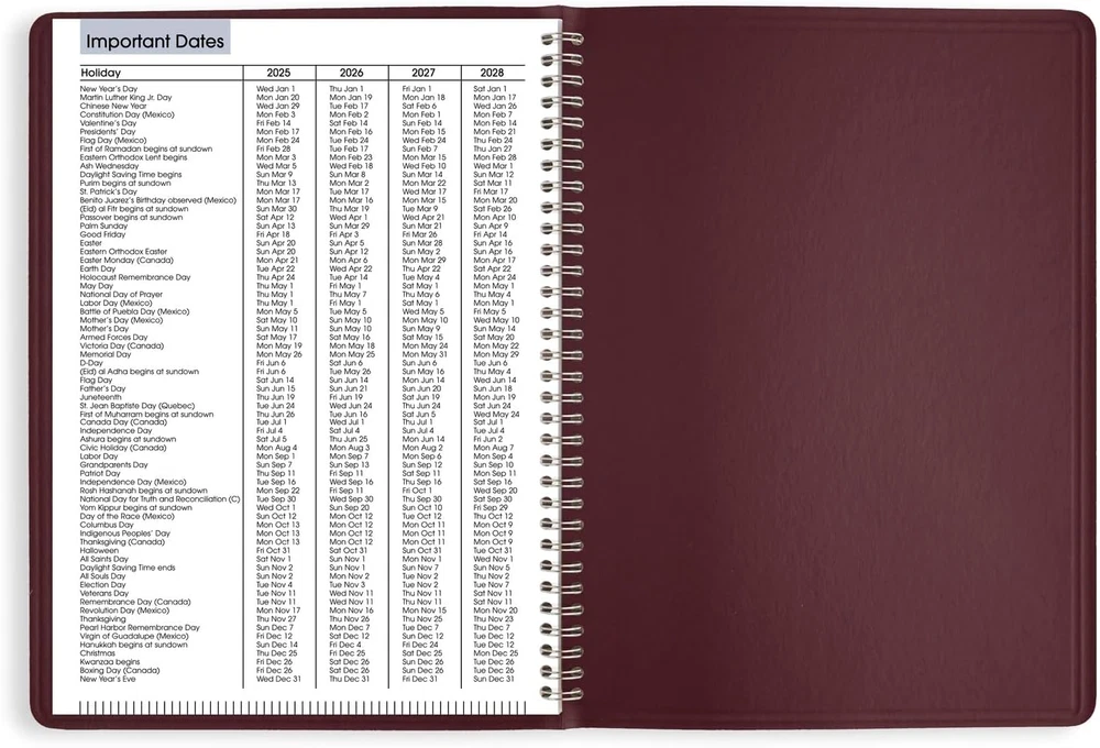 Menu Other Items Feedbacks About Us Contact Us Add To Favorites 2025 Appointment Book Planner, Weekly, 8" X 11", Large, Quarter-Hourly, Dayminder, Burgundy (G5201425) YEAR ROUND PLANNING – Planner covers a 12-month date range from January 2025 — December 2025 with Julian dates GUARANTEED TO LAST ALL YEAR – ACCO Brands will replace any defective AT-A-GLANCE planner that is returned within one year from the date of purchase. This does not cover damage due to misuse or abuse. INK BLEED RESISTANCE – Plan your schedule without fear of distracting ink bleeding. Our high-quality paper is designed for ink bleed resistance, which keeps plans neat and legible. WEEKLY VIEWS – One week per two page spread features ruled hourly appointment times from 7:00 a.m. — 9:45 p.m., Monday — Friday and 7:00 a.m. — 6:35 p.m. on Saturday. Sundays are untimed. Pages measure 8" x 11". SPECIAL FEATURES – Includes a 3-year reference calendar, personal information and important dates PROFESSIONAL DESIGN – Planner has a durable burgundy cover and twin wire binding to help prevent snags and secure pages ASSEMBLED IN THE U.S. – Thoughtfully designed and assembled in the U.S. using high-quality materials Confidently face every deadline this year with the AT-A-GLANCE DayMinder Weekly Appointment Book Planner. Date range covers 12 months from January 2025 — December 2025 with Julian dates. Guaranteed to last all year.* Plan your schedule without fear of distracting ink bleeding. High-quality paper is designed for ink bleed resistance, which keeps plans neat and legible. One week per two page spread features ruled hourly appointment times from 7:00 a.m. — 9:45 p.m., Monday — Friday and 7:00 a.m. — 6:35 p.m. on Saturday. Sundays are untimed. Past, present and future reference calendars included on each weekly spread. Pages measure 8" x 11". Expand your organizational skills with special pages. Includes a 3-year reference calendar, personal information and important dates. Planner has a durable burgundy cover and twin wire binding to help prevent snags and secure pages. Thoughtfully designed and assembled in the U.S. using high-quality materials. *ACCO Brands will replace any defective AT-A-GLANCE planner that is returned within one year from the date of purchase. This does not cover damage due to misuse or abuse. Item Specification Item model number G5201425 Ink Color Black Sheet Size 8 x 8 inches Material Paper Number of Items 1 Format Notebook, Organizer Color Burgundy Material Type Paper Cover Material Faux Leather Calendar Type Weekly Binding Spiral-bound Manufacturer Part Number G5201425 Style 2025 New Edition Item Weight 10.6 ounces Ruling Horizontal lines for appointment times Year 2025 Target Audience Teacher, Adult, Student Product Dimensions 18.69 x 10.56 x 12.12 inches Dimensions Shipping Returns Additional Info Product Dimensions: 10.56 inches x 18.69 inches x 12.12 inches. Weight: 10.6 oz Fast shipping is very important for us. Our standard shipping service is FREE. Your order will be shipped within 1-3 business days upon full payment received. Most items are delivered within 3-5 business days, however, please allow 3-10 business days. We are shipping only to USA. We only ship to the confirmed Paypal address. We reserve the right to cancel any order for any reason at any time. We are not responsible for undeliverable addresses. We offer a 30 day return policy from checkout winning date. Your satisfaction is guaranteed! If for any reason you are unhappy with your item, just return it within 30 days for a full refund, minus shipping cost. Please contact us prior to initiating a return so that we can issue you a refund authorization. Items defective upon receipt must be packaged in their retail packaging as if new and returned with a detailed description of the problem. Return shipping fees are not refundable. We reserve the right to decline any returns if the above guidelines are not followed. All of our items, unless otherwise stated, will only run on 120 volts. Please check to make sure your country complies with these specifications. If you have a problem or question regarding your transaction please contact us before leaving any type of feedback. We will work with you to resolve any problem you may have.