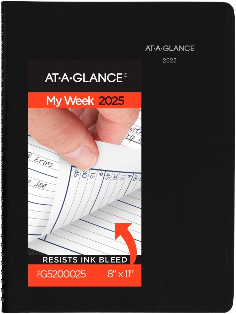 Menu Other Items Feedbacks About Us Contact Us Add To Favorites 2025 Appointment Book Planner, Weekly, 8" X 11", Large, Quarter-Hourly, Dayminder, Black (G5200025) YEAR ROUND PLANNING – Planner covers a 12-month date range from January 2025 — December 2025 with Julian dates GUARANTEED TO LAST ALL YEAR – ACCO Brands will replace any defective AT-A-GLANCE planner that is returned within one year from the date of purchase. This guarantee does not cover damage due to misuse or abuse. INK BLEED RESISTANCE – Plan your schedule without fear of distracting ink bleeding. Our high-quality paper is designed for ink bleed resistance, which keeps plans neat and legible. WEEKLY VIEWS – One week per two page spread features ruled hourly appointment times from 7:00 a.m. — 9:45 p.m., Monday — Friday and 7:00 a.m. — 6:35 p.m. on Saturday. Sundays are untimed. Pages measure 8" x 11". SPECIAL FEATURES – Includes a 3-year reference calendar, personal information and important dates PROFESSIONAL DESIGN – Planner has a durable black cover and twin wire binding to help prevent snags and secure pages ASSEMBLED IN THE U.S. – Thoughtfully designed and assembled in the U.S. using high-quality materials Confidently face every deadline this year with the AT-A-GLANCE DayMinder Weekly Appointment Book Planner. Date range covers 12 months from January 2025 — December 2025 with Julian dates. Guaranteed to last all year.* Plan your schedule without fear of distracting ink bleeding. High-quality paper is designed for ink bleed resistance, which keeps plans neat and legible. One week per two page spread features ruled hourly appointment times from 7:00 a.m. — 9:45 p.m., Monday — Friday and 7:00 a.m. — 6:35 p.m. on Saturday. Sundays are untimed. Past, present and future reference calendars included on each weekly spread. Pages measure 8" x 11". Expand your organizational skills with special pages. Includes a 3-year reference calendar, personal information and important dates page. Planner has a durable black cover and twin wire binding to help prevent snags and secure pages. Thoughtfully designed and assembled in the U.S. using high-quality materials. *ACCO Brands will replace any defective AT-A-GLANCE planner that is returned within one year from the date of purchase. This guarantee does not cover damage due to misuse or abuse. Item Specification Item model number G5200025 Ink Color Black Style 2025 New Edition Material Paper Number of Items 1 Format Organizer, Notebook Color Black Material Type Paper Cover Material Faux Leather Calendar Type Weekly Binding Spiral-bound Manufacturer Part Number G5200025 Item Weight 0.68 Pounds Year 2025 Target Audience Teacher, Adult, Student Product Dimensions 11.3 x 8.45 x 0.65 inches Dimensions Shipping Returns Additional Info Product Dimensions: 8.45 inches x 11.3 inches x 0.65 inches. Weight: 0.68 lb Fast shipping is very important for us. Our standard shipping service is FREE. Your order will be shipped within 1-3 business days upon full payment received. Most items are delivered within 3-5 business days, however, please allow 3-10 business days. We are shipping only to USA. We only ship to the confirmed Paypal address. We reserve the right to cancel any order for any reason at any time. We are not responsible for undeliverable addresses. We offer a 30 day return policy from checkout winning date. Your satisfaction is guaranteed! If for any reason you are unhappy with your item, just return it within 30 days for a full refund, minus shipping cost. Please contact us prior to initiating a return so that we can issue you a refund authorization. Items defective upon receipt must be packaged in their retail packaging as if new and returned with a detailed description of the problem. Return shipping fees are not refundable. We reserve the right to decline any returns if the above guidelines are not followed. All of our items, unless otherwise stated, will only run on 120 volts. Please check to make sure your country complies with these specifications. If you have a problem or question regarding your transaction please contact us before leaving any type of feedback. We will work with you to resolve any problem you may have.