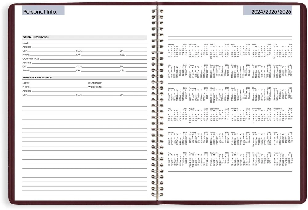 YEAR ROUND PLANNING – Planner covers a 12-month date range from January 2025 — December 2025 with Julian dates GUARANTEED TO LAST ALL YEAR – ACCO Brands will replace any defective AT-A-GLANCE planner that is returned within one year from the date of purchase. This does not cover damage due to misuse or abuse. INK BLEED RESISTANCE – Plan your schedule without fear of distracting ink bleeding. Our high-quality paper is designed for ink bleed resistance, which keeps plans neat and legible. WEEKLY VIEWS – One week per two page spread features ruled hourly appointment times from 7:00 a.m. — 9:45 p.m., Monday — Friday and 7:00 a.m. — 6:35 p.m. on Saturday. Sundays are untimed. Pages measure 8" x 11". SPECIAL FEATURES – Includes a 3-year reference calendar, personal information and important dates PROFESSIONAL DESIGN – Planner has a durable burgundy cover and twin wire binding to help prevent snags and secure pages ASSEMBLED IN THE U.S. – Thoughtfully designed and assembled in the U.S. using high-quality materials Confidently face every deadline this year with the AT-A-GLANCE DayMinder Weekly Appointment Book Planner. Date range covers 12 months from January 2025 — December 2025 with Julian dates. Guaranteed to last all year.* Plan your schedule without fear of distracting ink bleeding. High-quality paper is designed for ink bleed resistance, which keeps plans neat and legible. One week per two page spread features ruled hourly appointment times from 7:00 a.m. — 9:45 p.m., Monday — Friday and 7:00 a.m. — 6:35 p.m. on Saturday. Sundays are untimed. Past, present and future reference calendars included on each weekly spread. Pages measure 8" x 11". Expand your organizational skills with special pages. Includes a 3-year reference calendar, personal information and important dates. Planner has a durable burgundy cover and twin wire binding to help prevent snags and secure pages. Thoughtfully designed and assembled in the U.S. using high-quality materials. *ACCO Brands will replace any defective AT-A-GLANCE planner that is returned within one year from the date of purchase. This does not cover damage due to misuse or abuse.