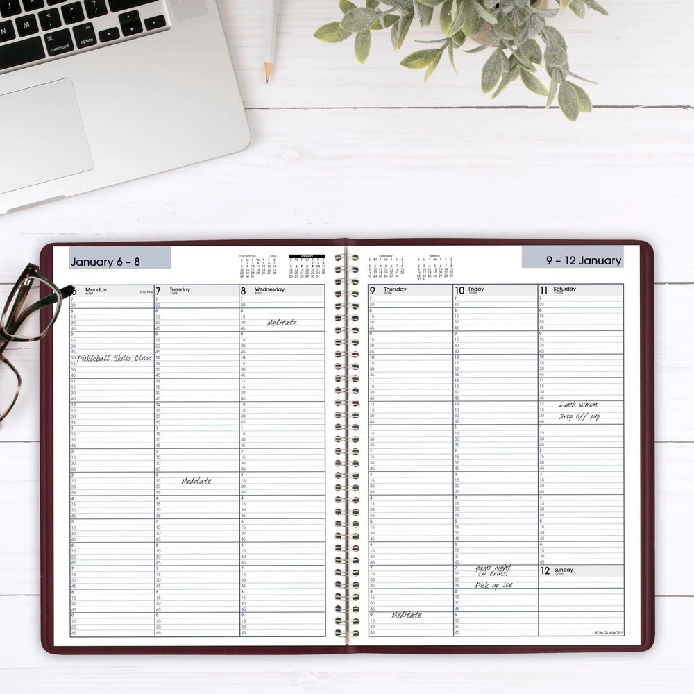 Menu Other Items Feedbacks About Us Contact Us Add To Favorites 2025 Appointment Book Planner, Weekly, 8" X 11", Large, Quarter-Hourly, Dayminder, Burgundy (G5201425) YEAR ROUND PLANNING – Planner covers a 12-month date range from January 2025 — December 2025 with Julian dates GUARANTEED TO LAST ALL YEAR – ACCO Brands will replace any defective AT-A-GLANCE planner that is returned within one year from the date of purchase. This does not cover damage due to misuse or abuse. INK BLEED RESISTANCE – Plan your schedule without fear of distracting ink bleeding. Our high-quality paper is designed for ink bleed resistance, which keeps plans neat and legible. WEEKLY VIEWS – One week per two page spread features ruled hourly appointment times from 7:00 a.m. — 9:45 p.m., Monday — Friday and 7:00 a.m. — 6:35 p.m. on Saturday. Sundays are untimed. Pages measure 8" x 11". SPECIAL FEATURES – Includes a 3-year reference calendar, personal information and important dates PROFESSIONAL DESIGN – Planner has a durable burgundy cover and twin wire binding to help prevent snags and secure pages ASSEMBLED IN THE U.S. – Thoughtfully designed and assembled in the U.S. using high-quality materials Confidently face every deadline this year with the AT-A-GLANCE DayMinder Weekly Appointment Book Planner. Date range covers 12 months from January 2025 — December 2025 with Julian dates. Guaranteed to last all year.* Plan your schedule without fear of distracting ink bleeding. High-quality paper is designed for ink bleed resistance, which keeps plans neat and legible. One week per two page spread features ruled hourly appointment times from 7:00 a.m. — 9:45 p.m., Monday — Friday and 7:00 a.m. — 6:35 p.m. on Saturday. Sundays are untimed. Past, present and future reference calendars included on each weekly spread. Pages measure 8" x 11". Expand your organizational skills with special pages. Includes a 3-year reference calendar, personal information and important dates. Planner has a durable burgundy cover and twin wire binding to help prevent snags and secure pages. Thoughtfully designed and assembled in the U.S. using high-quality materials. *ACCO Brands will replace any defective AT-A-GLANCE planner that is returned within one year from the date of purchase. This does not cover damage due to misuse or abuse. Item Specification Item model number G5201425 Item Weight 10.6 ounces Sheet Size 8 x 8 inches Calendar Type Weekly Number of Items 1 Format Organizer, Notebook Color Burgundy Binding Spiral-bound Cover Material Faux Leather Material Paper Material Type Paper Manufacturer Part Number G5201425 Style 2025 New Edition Ink Color Black Product Dimensions 18.69 x 10.56 x 12.12 inches Ruling Horizontal lines for appointment times Year 2025 Target Audience Teacher, Adult, Student Dimensions Shipping Returns Additional Info Product Dimensions: 10.56 inches x 18.69 inches x 12.12 inches. Weight: 10.6 oz Fast shipping is very important for us. Our standard shipping service is FREE. Your order will be shipped within 1-3 business days upon full payment received. Most items are delivered within 3-5 business days, however, please allow 3-10 business days. We are shipping only to USA. We only ship to the confirmed Paypal address. We reserve the right to cancel any order for any reason at any time. We are not responsible for undeliverable addresses. We offer a 30 day return policy from checkout winning date. Your satisfaction is guaranteed! If for any reason you are unhappy with your item, just return it within 30 days for a full refund, minus shipping cost. Please contact us prior to initiating a return so that we can issue you a refund authorization. Items defective upon receipt must be packaged in their retail packaging as if new and returned with a detailed description of the problem. Return shipping fees are not refundable. We reserve the right to decline any returns if the above guidelines are not followed. All of our items, unless otherwise stated, will only run on 120 volts. Please check to make sure your country complies with these specifications. If you have a problem or question regarding your transaction please contact us before leaving any type of feedback. We will work with you to resolve any problem you may have.