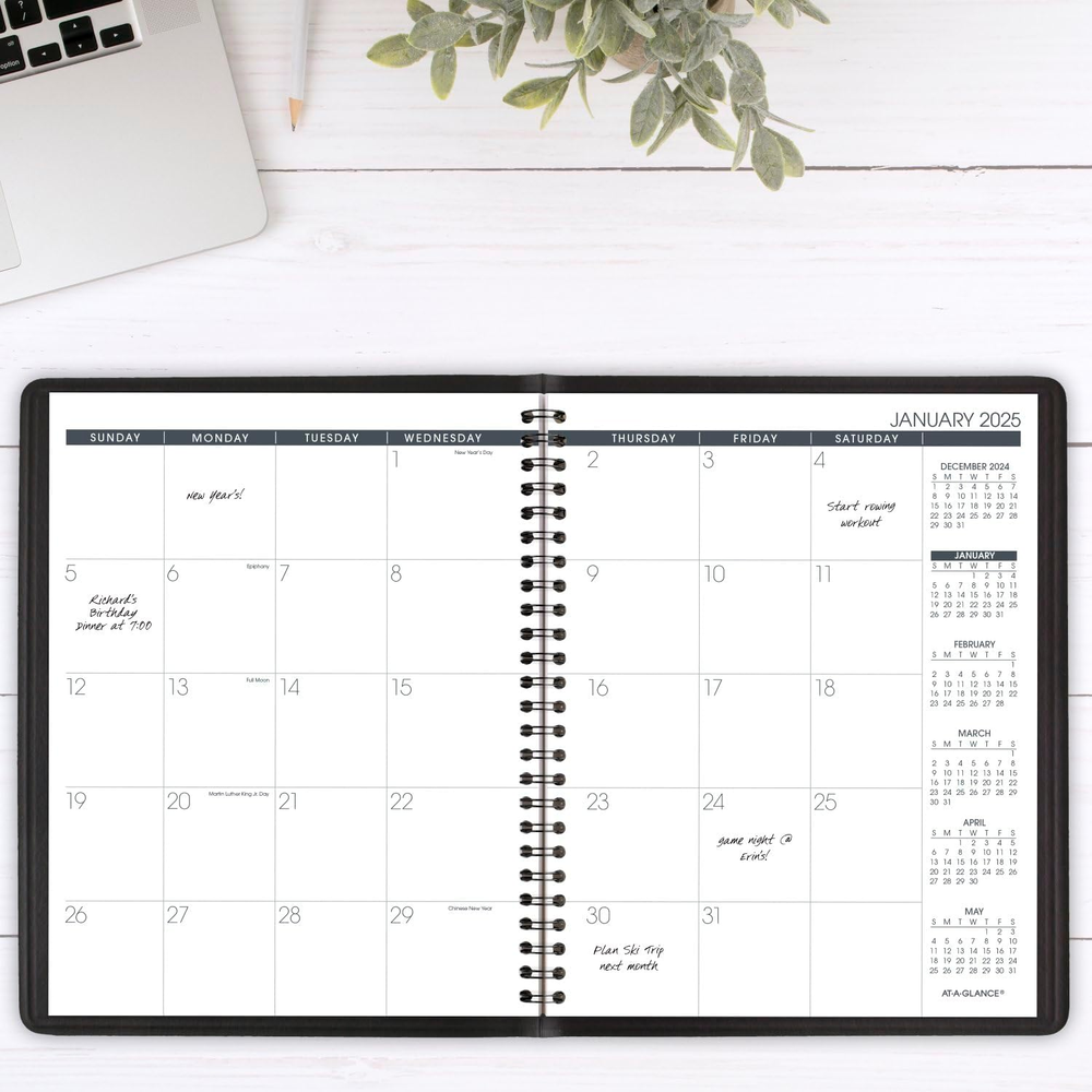 This 2025 planner is perfect for staying organized! The compact size fits easily in a bag, and the sturdy spiral binding holds up well. The monthly layout is clean and spacious, making it easy to track appointments, deadlines, and events. The faux leather cover gives it a sleek, professional look, and the paper quality is smooth for writing. Love that it covers the full year—great for students, teachers, or busy professionals. Definitely worth it!