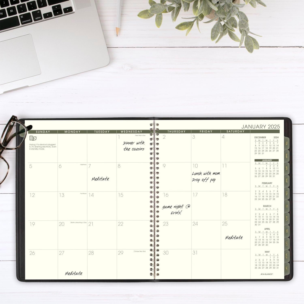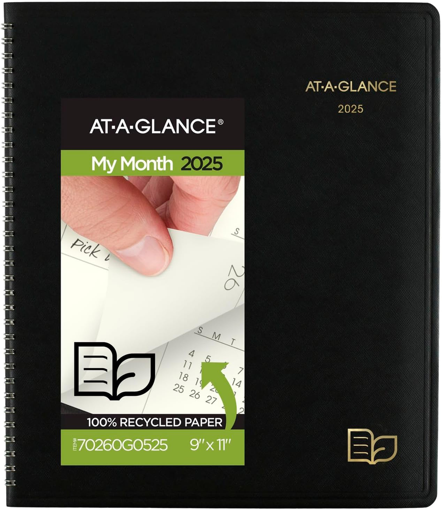 2025 Planner, Monthly, 9" X 11", Large, Recycled, Black (70260G0525) YEAR ROUND PLANNING – Keep track of your schedule with an eco-friendly twist this year. Planner covers 12 months from January 2025 — December 2025 with Julian dates. RECYCLED MATERIALS – Contains 100% post-consumer waste recycled paper with 50% post-consumer waste recycled covers. Tips for green living included on every page. MONTHLY OVERVIEW – One month per two page spread has unruled daily blocks, plus reference calendars for in depth planning. 9" x 11" page size. Daily block size measures 2" x 2". SPECIAL FEATURES – Includes future planning, important dates, telephone/address and notes pages PROFESSIONAL DESIGN – Planner has a black faux leather cover and twin wire binding to help prevent snags and secure pages ASSEMBLED IN THE U.S. – Thoughtfully designed and assembled in the U.S. using high-quality materials Plan to stay one step ahead of your deadlines with an eco-friendly twist this year with the AT-A-GLANCE Monthly Planner. Date range covers 12 months from January 2025 — December 2025. Guaranteed to last all year.* This planner contains 100% post-consumer waste recycled paper with 50% post-consumer waste recycled covers. Plus, find tips for green living on every page to inspire you to embrace sustainability in your daily life. One month per two page spread has unruled daily blocks for open scheduling. Past, current and future month reference calendars included on each page for in depth planning. 9" x 11" page size. Daily block size measures 2" x 2". Special pages include future planning, important dates, telephone/address and notes pages Take charge of your schedule with classic style. Planner has a black faux leather cover and twin wire binding to help prevent snags and secure pages. Thoughtfully designed and assembled in the U.S. using high-quality materials. *ACCO Brands will replace any defective AT-A-GLANCE planner that is returned within one year from the date of purchase. This does not cover damage due to misuse or abuse. Sheet Size Letter Material Paper Format Organizer, Notebook Paper Size Letter Color Black Material Type Paper Cover Material Faux Leather Calendar Type Monthly Binding Spiral-bound Style 2025 New Edition Item Weight 6.72 ounces Model Year 2025 Year 2025 Target Audience Teacher, Adult, Student Shipping Fast shipping is very important for us. Our standard US shipping service is FREE. Your order will be shipped within 2-3 business days upon full payment received. Your order will be delivered within 2-3 business days after the handling time. We only ship to the confirmed PayPal address. We reserve the right to cancel any order for any reason at any time. We are not responsible for undeliverable addresses. Returns and payment We offer a 30 days return policy from checkout winning date. We allow only PayPal as payment method FeedBack Your feedback very important to us, after you get your package and you are satisfied with our service please leave us positive feedback If you have any problem with your order / any questions please before leave any type of feedback For any questions, using eBay contact system Please visit our eBay store to check out other items for sale! Thank you for shopping at our store.