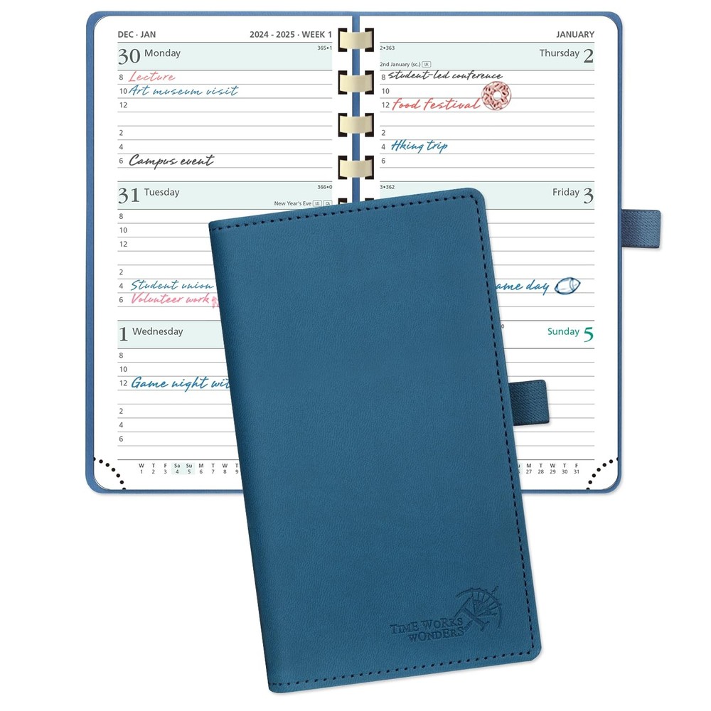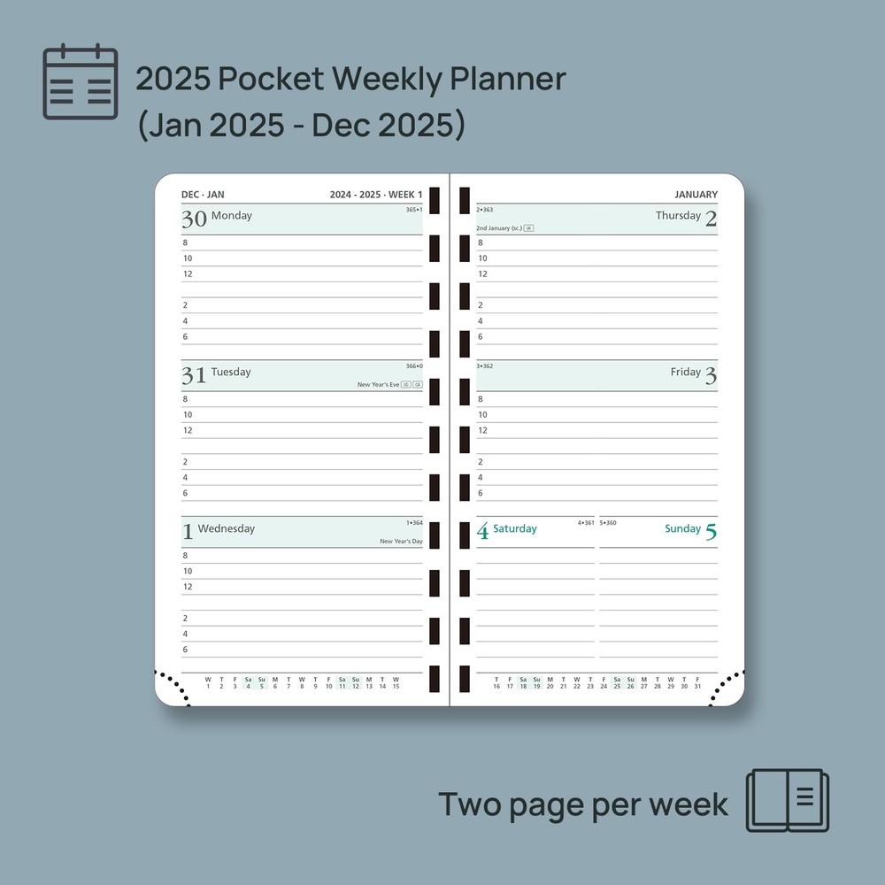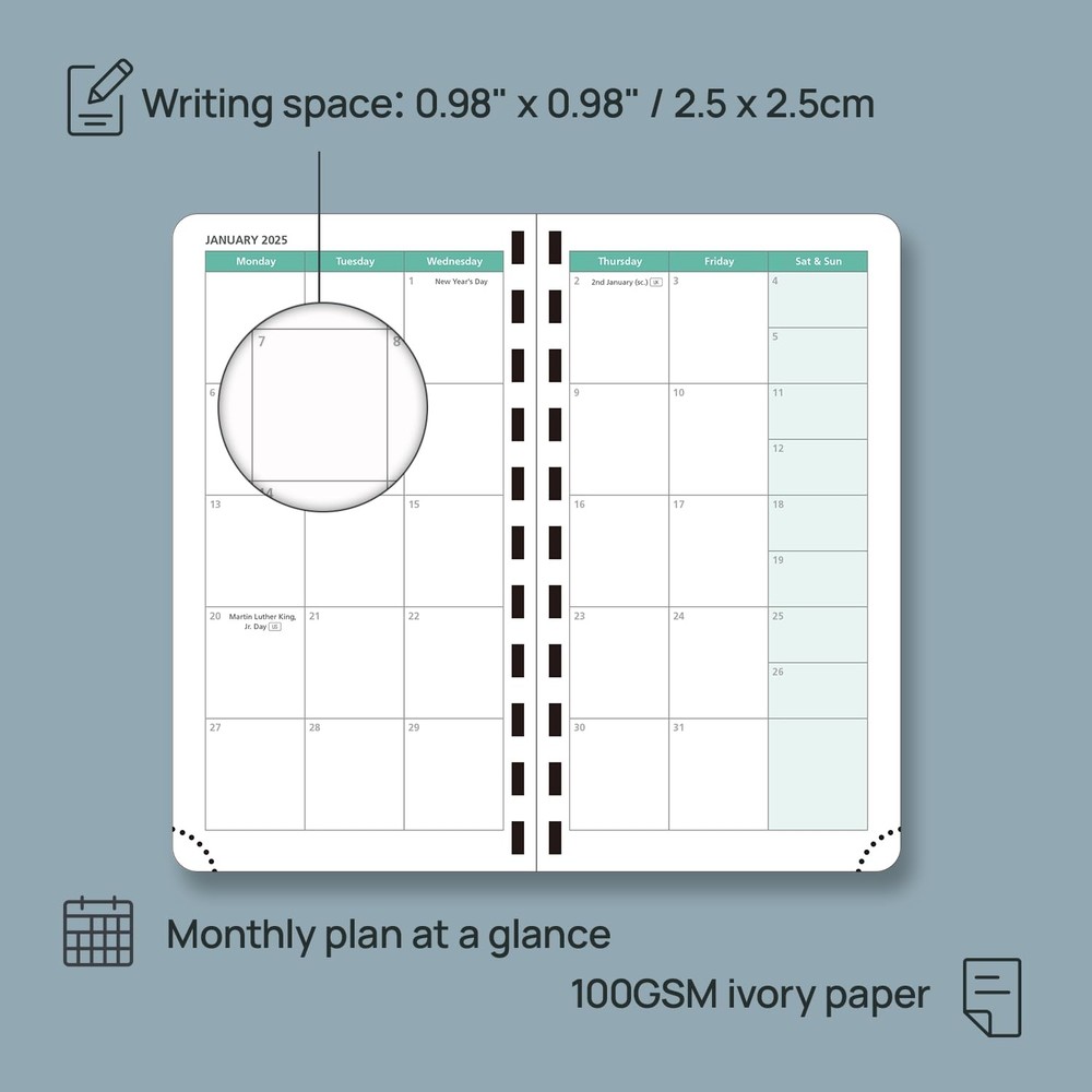 This compact 2025 planner is a lifesaver for staying organized on the go! The perfect size fits easily in bags or pockets, yet offers plenty of writing space. I love the weekly+monthly layout—makes planning simple. The sturdy spiral binding holds up well, and the smooth paper takes ink nicely. Bright, clean design keeps it functional without distractions. A great value for keeping appointments, goals, and tasks in check all year!
