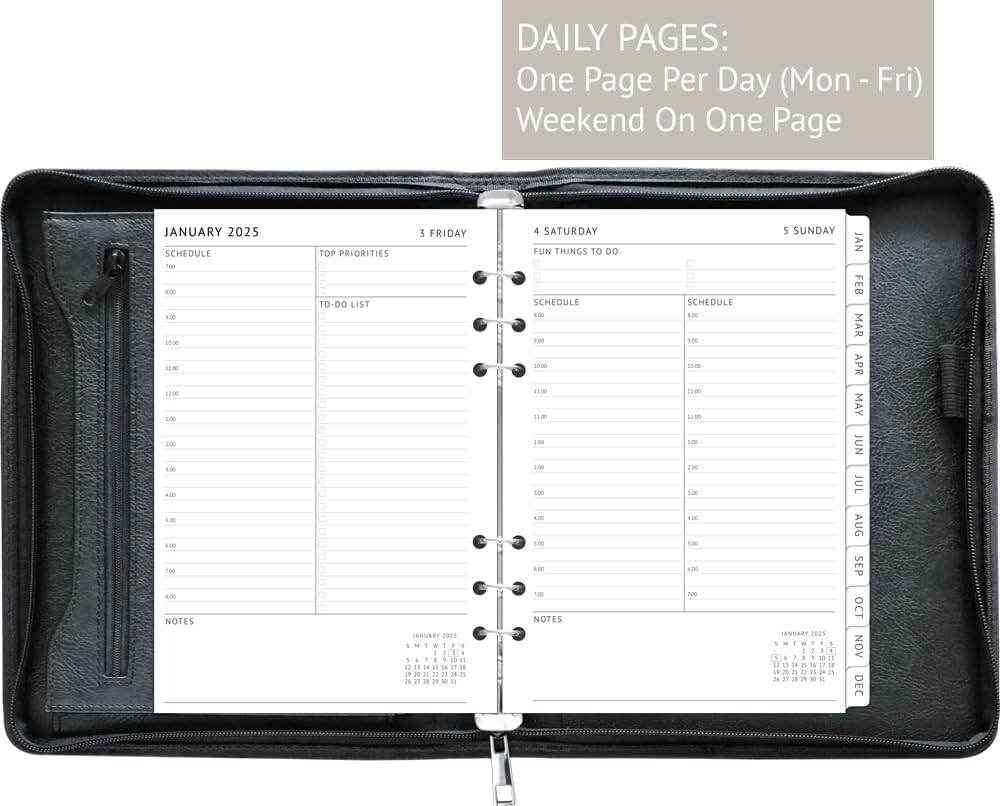 2025 Zipper Planner Organizer - A5 Faux Leather Daily & Monthly Refills in Black ‹ › ‹ › ‹ › ‹ › ‹ › ‹ › ‹ › ‹ › ‹ › 2025 Zipper Planner Organizer - A5 Faux Leather Daily & Monthly Refills in Black Product Overview: This stunning zipper planner is meticulously designed for those who value organization and style. Perfect for managing your year ahead, this premium A5 planner features dated 2025 daily and monthly pages, ensuring you stay on top of your commitments with ease and elegance. Features & Specifications: Elegant black simulated leather cover adds sophistication to your planning. Durable 6-ring binder with strong 1" rings for secure paper holding. Practical inner pockets and card sleeves for added functionality. Includes a pen holder and zippered closure to safeguard your important notes. One Page Per Day layout featuring: A half-hour schedule from 7:00 am to 8:00 pm. 'Today's Top 3 Priorities' and a customizable to-do list with checkboxes. Note space for additional reminders and a reference calendar. Weekend On One Page with dedicated time slots from 8:00 am to 7:00 pm and 'Fun Things To Do' sections. Month On Two Pages layout with lined daily blocks and notes sections. Coated tabs allow for quick navigation through the planner. Refillable design—insert standard A5 6-hole papers to continue using your planner year after year. Benefits: Boost your productivity by tracking appointments, creating to-do lists, and setting actionable goals. Stay organized and stylish with a travel-ready planner to accommodate your busy lifestyle. Versatile enough for busy professionals, students, or anyone who desires a structured daily routine. Includes essential 2025 Daily Planner Refills covering January to December 2025, ensuring no detail is overlooked. Why Choose Our 2025 Zipper Planner Organizer? Elevate your organizational skills with our luxurious 2025 Zipper Planner. Its sophisticated design combined with practical features makes it a must-have for anyone determined to stay organized in style. Whether you’re mapping out your professional meetings or planning exciting weekend activities, this planner complements your aspirations and ensures you stay one step ahead of life’s demands. Prepare for success in 2025 with this elegant, versatile planner—because your goals deserve the best plan! Shipping Free & Fast Shipping - We offer free shipping to most of the USA with a normal delivery time of 3-7 days. However, due to the current situation, additional delivery time (up to 3 weeks) may be required for some items. Alternative Carriers - We may use alternative carriers (e.g. USPS, FedEx, UPS, etc.) to ensure your package arrives safely and on time. Due to the use of multiple carriers, we are unable to provide a tracking number automatically. Handling Time - Orders are processed and shipped within 1-2 business days of receiving cleared payment. Shipping Restrictions - Shipping to Alaska, Hawaii, Puerto Rico, Guam, and other US territories may incur shipping charges or delivery restrictions. Please contact us before ordering, or your order can be refunded/cancelled. State Restrictions - There may be restrictions based on your state of purchase. For example, certain items may not be shipped to California due to state regulations. Contact for Tracking Updates - If you require tracking updates or have any concerns about the delivery of your order, please feel free to contact us, and we will be happy to assist you. Return 30-Day Hassle-Free Returns - We want you to be completely satisfied with your purchase. If you are not, you can return the item within 30 days of receiving it for a full refund or exchange. Easy Return Process - To start a return, simply contact us and we will provide you with a prepaid return shipping label and detailed instructions. Restocking Fee - There are no restocking fees for returns. However, the buyer is responsible for return shipping costs if the return is not due to a seller's error. Refund Processing Time - Refunds will be processed within 5 business days of receiving the returned item in its original condition. Payment We accept all major credit cards, PayPal, and Apple Pay for your convenience. Your payment information is secure and encrypted to ensure a safe and seamless transaction. Please complete your payment within 3 days of purchase to avoid any delays in shipping. Feedback Your feedback is extremely important to us. We strive to provide the best products and customer service possible. If you are satisfied with your purchase, please take a moment to leave us a positive review. If you have any concerns or issues with your order, please contact us before leaving negative feedback. We are committed to resolving any problems and ensuring your satisfaction. Contact Us If you have any questions or concerns, please feel free to reach out to our customer support team. You can contact us through the eBay messaging system. We are available Monday to Friday, 9:00 am to 5:00 pm EST, and we will do our best to respond to your inquiry within 24 hours. Buy it now and enjoy a pleasant shopping experience! UPC: Not Set Model: Not Set MPN: Not Set Unit Quantity: 1 Brand: Unbranded Type: Planner Format: Daily/Monthly Material: Faux Leather Size: A5 Calendar Year: Not Set Country/Region of Manufacture: Not Set Unit Type: Unit Personalize: Not Set