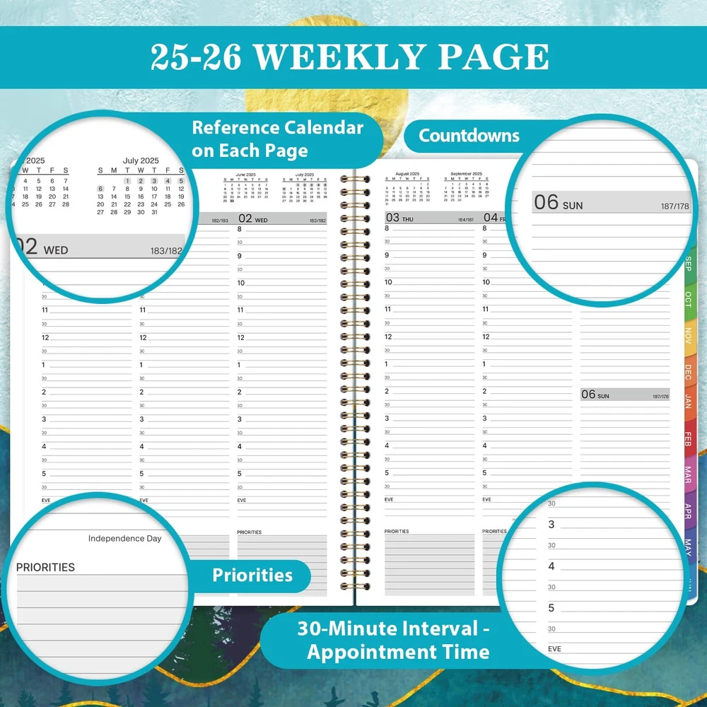 2025-2026 Appointment Book/Planner - Weekly Appointment Book Features: 🌲Weekly Appointment Book 2025-2026 Overview - Our 2025-2026 daily planner is from July 2025 to June 2026. It measures 9"x11" and includes 30 minutes of appointments per day, making it the perfect tool to make your life more creative. 🌲Daily/Hourly Planner 2025-2026 - One vertical column per day, one week per two pages. With 30-minute intervals from 8:00 a.m. to 5:30 p.m., Monday through Sunday, you can organize your day and make good use of writing space. Besides, priorities on each page, 4-month reference calendars and holiday reminders will help you better organize your life. 🌲Professional Details Of Daily Planner 2025-2026 - 9"x11" Planning Pages + Quick Reference Information + 2 Contacts Pages + 2025-2026 Yearly Planning Page + 2025-2026 Yearly Overview + 2025-2027 Holidays + Future Planning Pages + Notes Pages + Back Pocket + Twin-Wire Binding + Julian Date + Premium Paper + Colorful Monthly Tabs + Flexible Cover. 🌲Funtional Pages Design Of Academic Planner 2025-2026 - Each month of this 2025-2026 appointment book has two full pages for your arrangement and you can write down all kinds of tasks every day in the daily blocks. Priorities, Julian dates, holidays, past and future reference calendars can help you keep your life organized and are perfect for staying focused and achieving your goals. 🌲Improve Your Life - This 2025-2026 weekly appointment book will help you organize your time, plan your life, improve the quality of your life, being more productive in fragmented time and create unlimited possibilities in limited time. Description: 2025-2026 Appointment Book/Planner - Weekly Appointment Book 2025-2026, Jul.2025 - Jun.2026, 9"x11", Daily Hourly Planner 2025-2026 with 30-Minute Interval, Colorful Tabs If you need more quantity than shown available - just send me a message and I'll increase the purchased limit for you 🌺 SHIPPING We are always working hard to ensure your package arrives as soon as possible. Please understand that some factors like weather, high postal traffic, and the performance of shipping companies are outside of our control. We offer free shipping to the lower 48 states. We do not accept P.O. Boxes. Please provide a physical address. Thank you 🌺 TRANSLATE with x English Arabic Hebrew Polish Bulgarian Hindi Portuguese Catalan Hmong Daw Romanian Chinese Simplified Hungarian Russian Chinese Traditional Indonesian Slovak Czech Italian Slovenian Danish Japanese Spanish Dutch Klingon Swedish English Korean Thai Estonian Latvian Turkish Finnish Lithuanian Ukrainian French Malay Urdu German Maltese Vietnamese Greek Norwegian Welsh Haitian Creole Persian