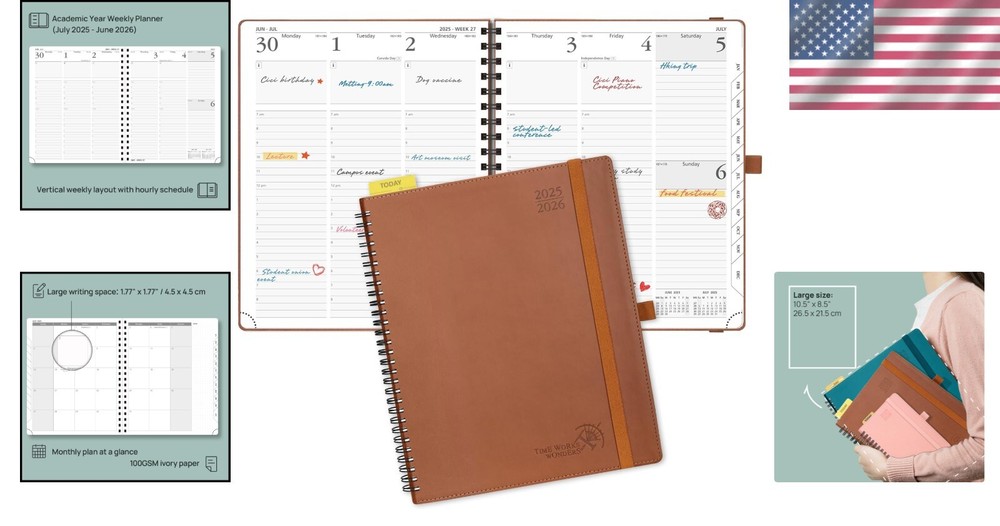 2025-2026 Large Weekly Academic Calendar - Spacious Layout with Hourly Slots ‹ › ‹ › ‹ › ‹ › ‹ › ‹ › ‹ › ‹ › 2025-2026 Large Weekly Academic Calendar Spacious Layout with Hourly Slots Features: LARGE WRITING SPACE: Dimensions of 8.5" x 10.5" provide ample writing areas tailored for students' needs. VERTICAL HOURLY LAYOUT: Weekly view from 7:00 AM to 8:00 PM laid out across two pages – ideal for managing busy academic schedules. QUICK SEARCH FUNCTION: Features like the flexible "TODAY" ruler and monthly tabs make navigation effortless. EXTRA FUNCTION PAGES: Includes a yearly overview, holiday & calendar, monthly expenses, contact & password pages, and 7 dotted notes pages for all your detailing. HIGH-QUALITY PAPER: Crafted with 100GSM FSC-certified paper sourced from sustainable forests, ensuring a smooth, ink-resistant writing experience. Benefits: Stay organized and on top of your academic commitments. Generous writing space accommodates notes, reminders, and assignments. Easily track your important dates and priorities with dedicated function pages. Enjoy quality and durability with sustainable paper. Why Choose Our Large Weekly Academic Calendar? This calendar is more than just a planner; it's a thoughtfully designed tool to elevate your academic performance. With spacious writing areas and a vertical hourly layout, you won't miss any important deadlines or appointments. The quick search function allows for effortless navigation, while the high-quality paper ensures your writing is both enjoyable and legible. Make the most of your academic year with our Large Weekly Academic Calendar. Order yours today and step into an organized and successful school year! Shipping Free & Fast Shipping - We offer free shipping to most of the USA with a normal delivery time of 3-10 businessdays. However, due to various situations, additional delivery time (up to 3 weeks) may be required for some items. Alternative Carriers - We may use alternative carriers (e.g. USPS, FedEx, UPS, etc.) to ensure your package arrives safely and on time. Due to the use of multiple carriers, we are unable to provide a tracking number automatically. Handling Time - Orders are processed and shipped within 1-5 business days of receiving cleared payment. Shipping Restrictions - Shipping to Alaska, Hawaii, Puerto Rico, Guam, and other US territories may incur shipping charges or delivery restrictions. Please contact us before ordering, or your order can be refunded/cancelled. State Restrictions - There may be restrictions based on your state of purchase. For example, certain items may not be shipped to California due to state regulations. Contact for Tracking Updates - If you require tracking updates or have any concerns about the delivery of your order, please feel free to contact us, and we will be happy to assist you. Return Please see our ebay return policy. We do not accept return on most products. This is to avoid customers mis-using ebay returns. All sales are final. Please be sure to check the return policy listed at the top of the listing. In rare cases, we may accept returns, if the buyer pays both ways shipping and 20% restocking fee. If you are un-sure of return policy of a particular item, please ask before buying. Payment We accept all major credit cards, PayPal, and Apple Pay for your convenience. Your payment information is secure and encrypted to ensure a safe and seamless transaction. Please complete your payment within 3 days of purchase to avoid any delays in shipping. Feedback Your feedback is extremely important to us. We strive to provide the best products and customer service possible. If you are satisfied with your purchase, please take a moment to leave us a positive review. If you have any concerns or issues with your order, please contact us before leaving negative feedback. We are committed to resolving any problems and ensuring your satisfaction. Contact Us If you have any questions or concerns, please feel free to reach out to our customer support team. You can contact us through the eBay messaging system. We are available Monday to Friday, 9:00 am to 5:00 pm EST, and we will do our best to respond to your inquiry within 24 hours. Buy it now and enjoy a pleasant shopping experience! UPC: Not Set Model: Not Set MPN: Not Set Unit Quantity: 1.36 Brand: Unbranded Type: Planner Material: Faux Leather Calendar Year: 2025 Size: Large Format: Weekly Country/Region of Manufacture: Not Set Unit Type: lb Personalize: Not Set