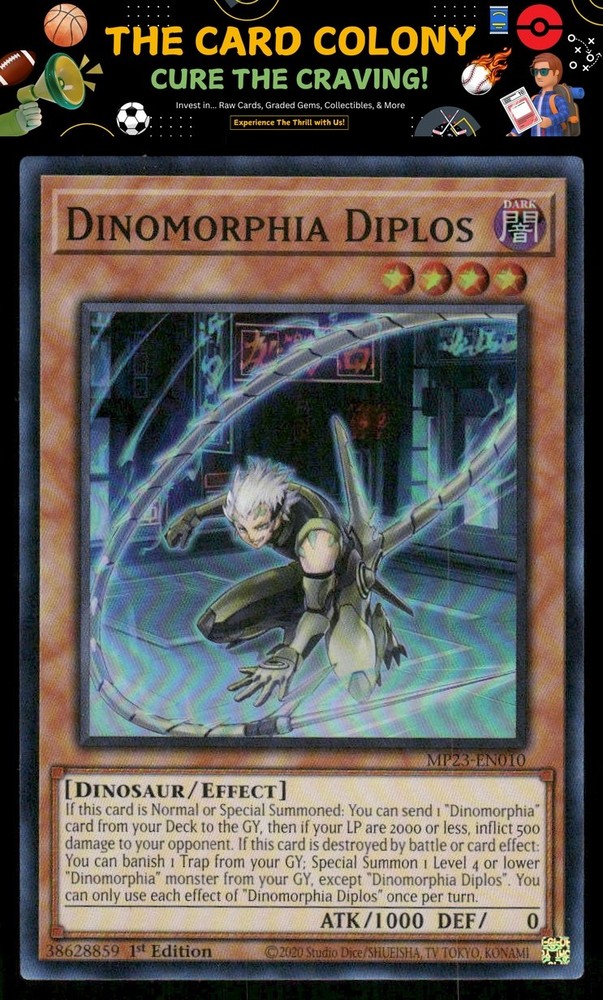 This is a nice example of a 25th Anniversary Tin: Dueling Heroes Mega Pack #MP23-EN010 Dinomorphia Diplos Other important information about this card: Super Rare In 2023 Dinomorphia Diplos played for the . Please check out our other listings for more great cards.