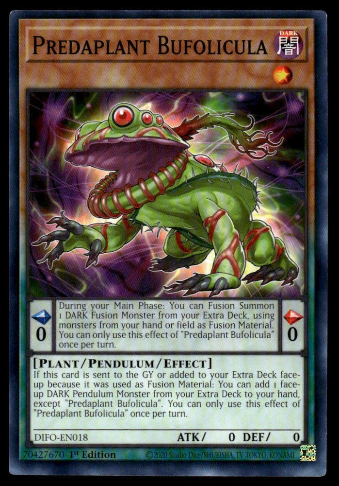 This is a nice example of a 25th Anniversary Tin: Dueling Heroes Mega Pack #MP23-EN070 Predaplant Bufolicula Other important information about this card: In Predaplant Bufolicula played for the . Please check out our other listings for more great cards.