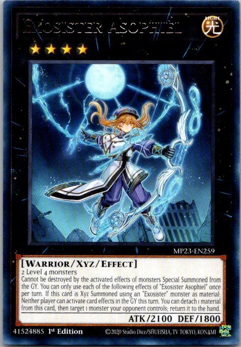 This is a nice example of a 25th Anniversary Tin: Dueling Heroes Mega Pack #MP23-EN259 Exosister Asophiel Other important information about this card: Rare In 2023 Exosister Asophiel played for the . Please check out our other listings for more great cards.