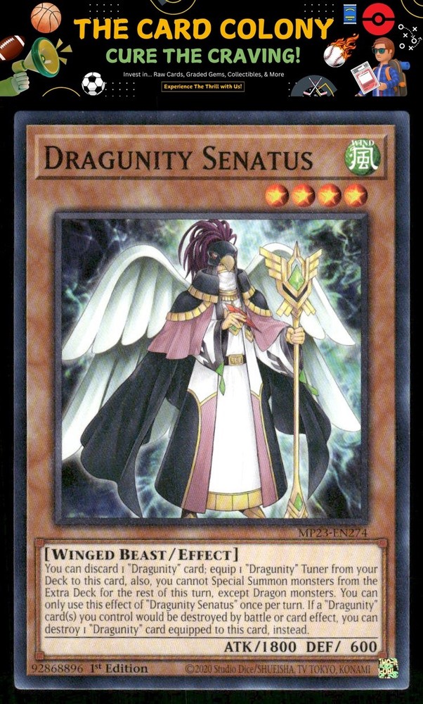 This is a nice example of a 25th Anniversary Tin: Dueling Heroes Mega Pack #MP23-EN274 Dragunity Senatus Other important information about this card: In 2023 Dragunity Senatus played for the . Please check out our other listings for more great cards.