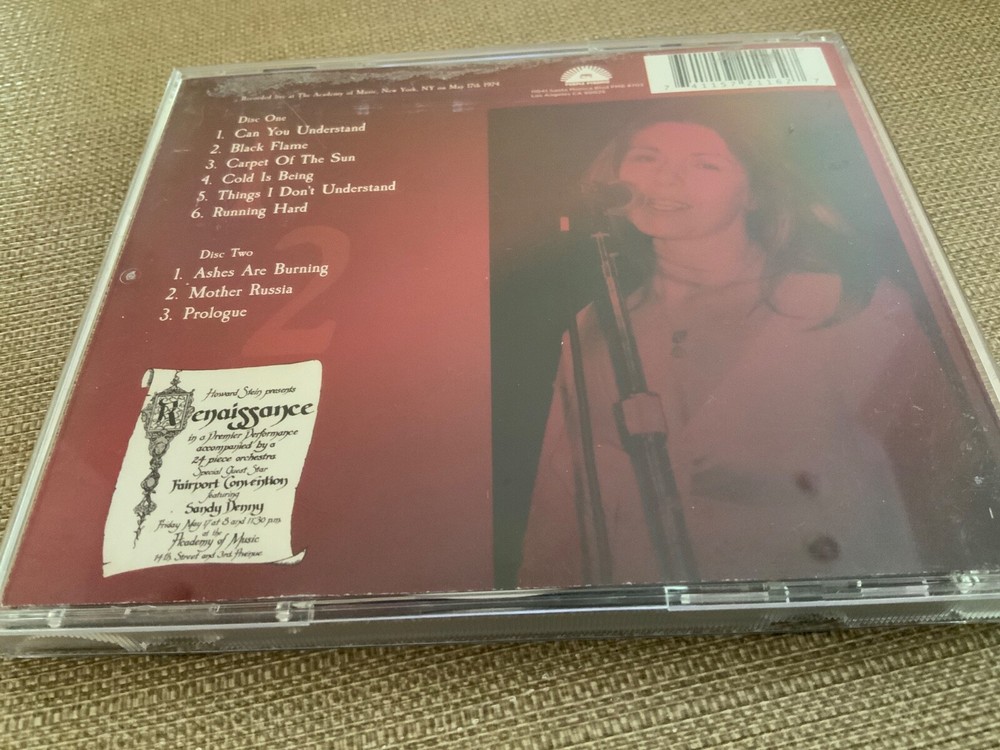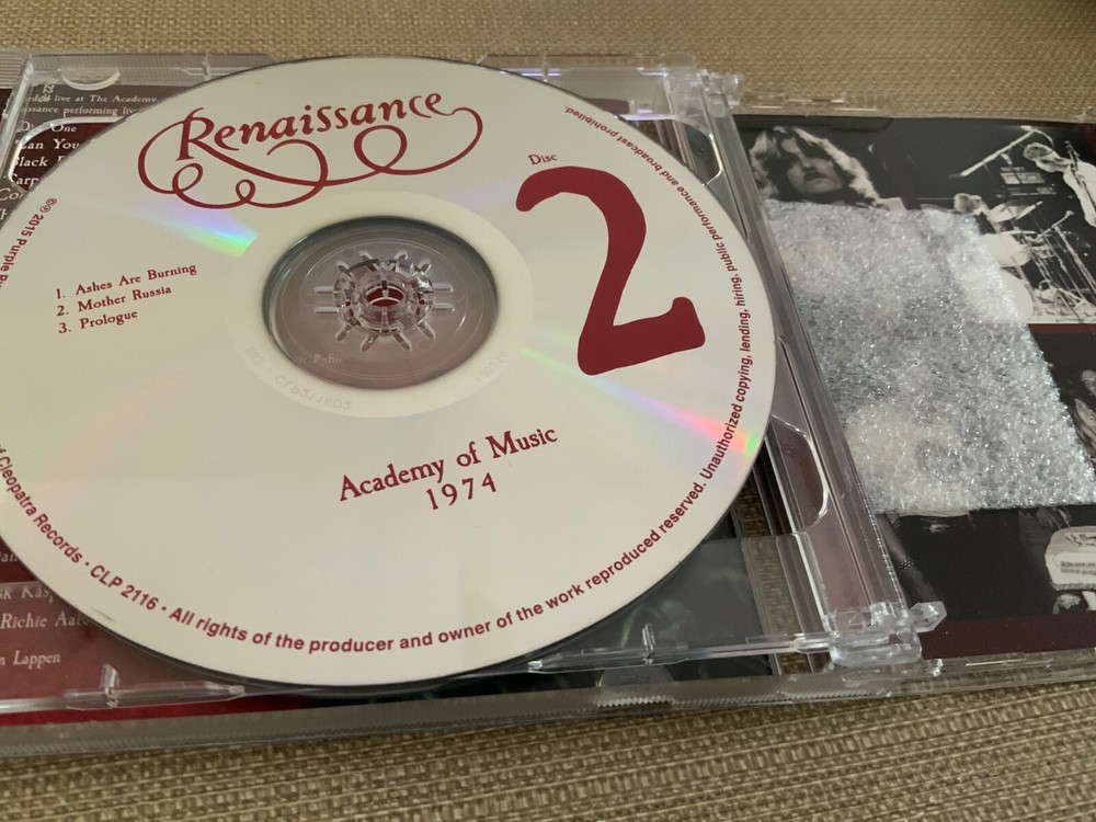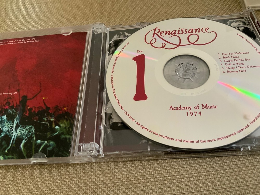 2-CD Renaissance Academy Of Music NYC 1974 Live Annie Haslem Andy Powell Wishbone Ash NM/NM: The CD (2-disc set) was bought-new, played just once. Discs in excellent condition with flawless playback (confirmed with EAC) and no visible wear. The jewel case & inserts in excellent condition with no shelf wear and other than some glue residue on backside of plastic case, there are no marks. Featuring Annie Haslem and Michael Dunford. Label: Purple Pyramid – CLO 3013 Format: 2 x CD, Album, Reissue Barcode: 0889466301322 Country: US Released: 2022 Genre: Rock, Prog Rock, Symphonic Rock 1-1 Can You Understand 1-2 Black Flame 1-3 Carpet Of The Sun 1-4 Cold Is Being 1-5 Things I Don't Understand 1-6 Running Hard 2-1 Ashes Are Burning Guitar – Andy Powell Piano – Howard Stein 2-2 Mother Russia 2-3 Prologue Recorded At – Academy Of Music Bass – Jon Camp Drums – Terence Sullivan Guitar – Michael Dunford Keyboards – John Tout Vocals – Annie Haslam Recorded live at The Academy of Music, New York, NY on May 17th 1974.