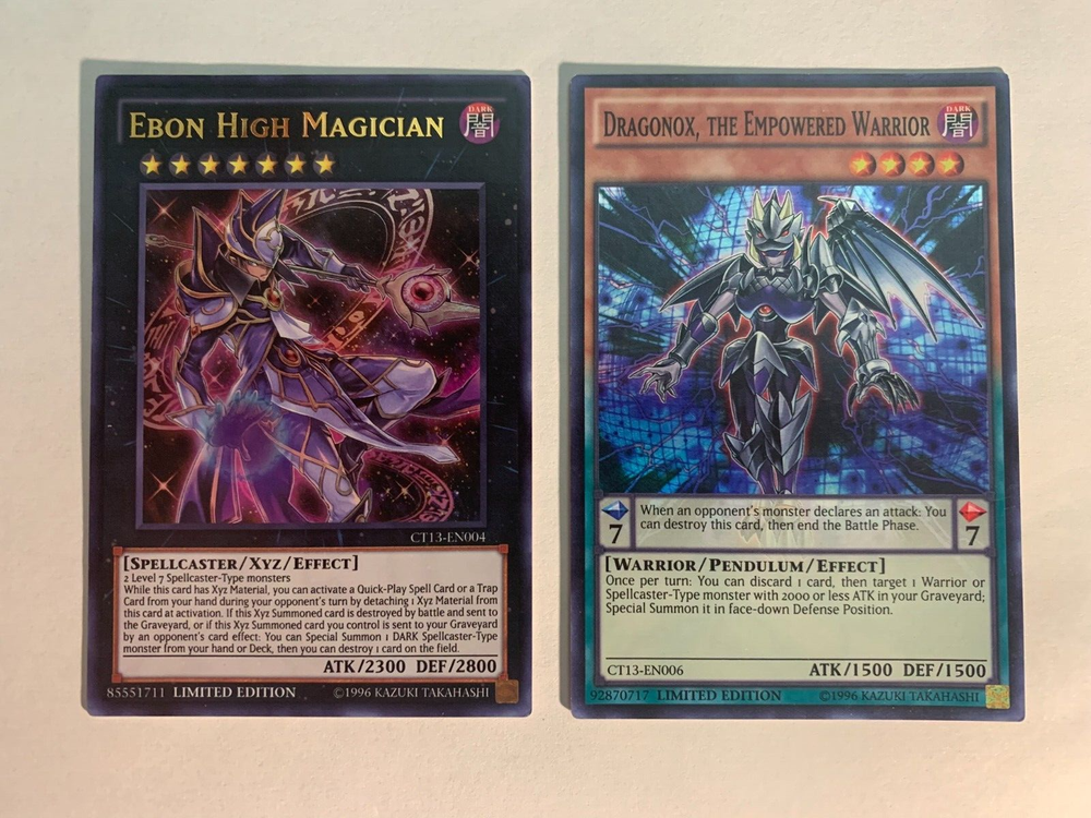 2x Lot Yugioh CT13-EN004 Ebon High Magician & Dragonok Mega Tin Limited Edition. Please consult pictures for condition.