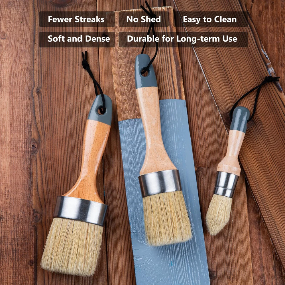 3 Set Professional round Chalk Paint Wax Brush Painting Waxing Annie Sloan Wood Set Include: Our chalk paint brush set contains three wax paint brushes, with one large oval brush, one medium oval brush and one pointed brush. It is great for getting into nicks and crannies with paint or wax Premium Natural Bristles: The chalk paint brushes are made of bristles which are sturdy yet flexible and pliable, bristles are dense, not easy to shed, and the uniform brushing makes the texture more delicate and smooth Strong Wooden Handle: Natural wood, ergonomic design to ensure long-term use is not easy to wear the palm, feel comfortable without slipping. The furniture wax brushes have leather hanging straps, helping you to hang them after using Connection stabilization: Stainless steel rings are not easy to rust, maximum bristle retention, it can be cleaned up with soapy warm water. The perfect addition to any chalk and wax paint brush kit Wide Application: Round paint brushes are great for any DIY furniture, easy to use for chalk painting, furniture wax painting, milk painting, home decor. Make stenciling, stamping, waxing, painting and color mixing convenient Shipping We offer FREE shipping on all orders! We ship within Three business days of payment, usually sooner. We use a selection of shipping services such as UPS, FedEx, USPS etc. We only ship to the lower 48 states, no APO/FPO addresses or PO Boxes allowed. Local pickups and combined shipping options are not provided at this time. Return You can return a product for up to 30 days from the date you purchased it. Any product you return must be in the same condition you received it and in the original packaging. Please keep the receipt. Payment We accept payment by any of the following methods: PayPal Please pay as soon as possible after winning an auction, as that will allow us to post your item to you sooner! Feedback Customer satisfaction is very important to us. If you have any problem with your order, please contact us and we will do our best to make you satisfied. Contact Us If you have any queries, please contact us via ebay. We usually respond within 24 hours on weekdays. Please visit our eBay store to check out other items for sale! Thank you for shopping at our store.