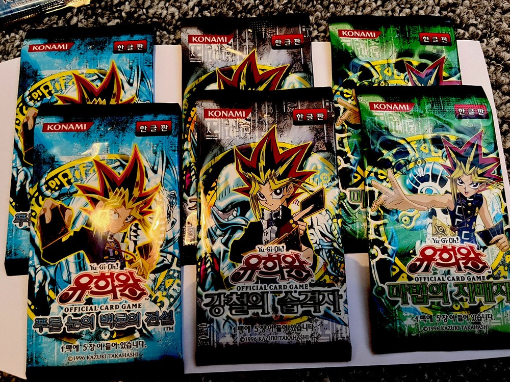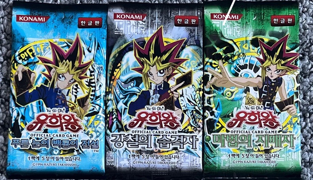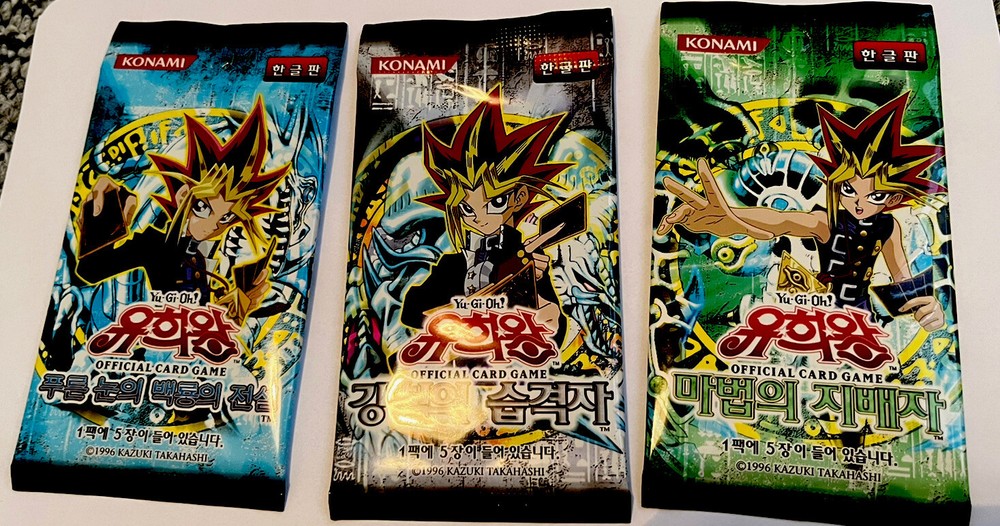Yugioh x1 (1 x each set) Korean LOB, SRL/MRL & MRD Booster Packs Sealed legend of blue eyes white dragon, metal raiders and spell ruler / magic ruler Factory sealed booster packs Legacy booster packs from the 1st 3 yugioh tcg sets 2002. Including blue eyes, Dark magician, red eyes black dragon and Exodia the forbidden one. Relinquished, blue eyes toon dragon, gate guardian, summoned skull, b skull dragon and more Perfect for GOAT format Old school nostalgic yugioh