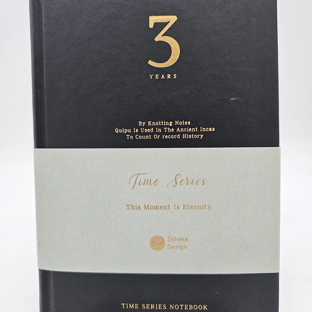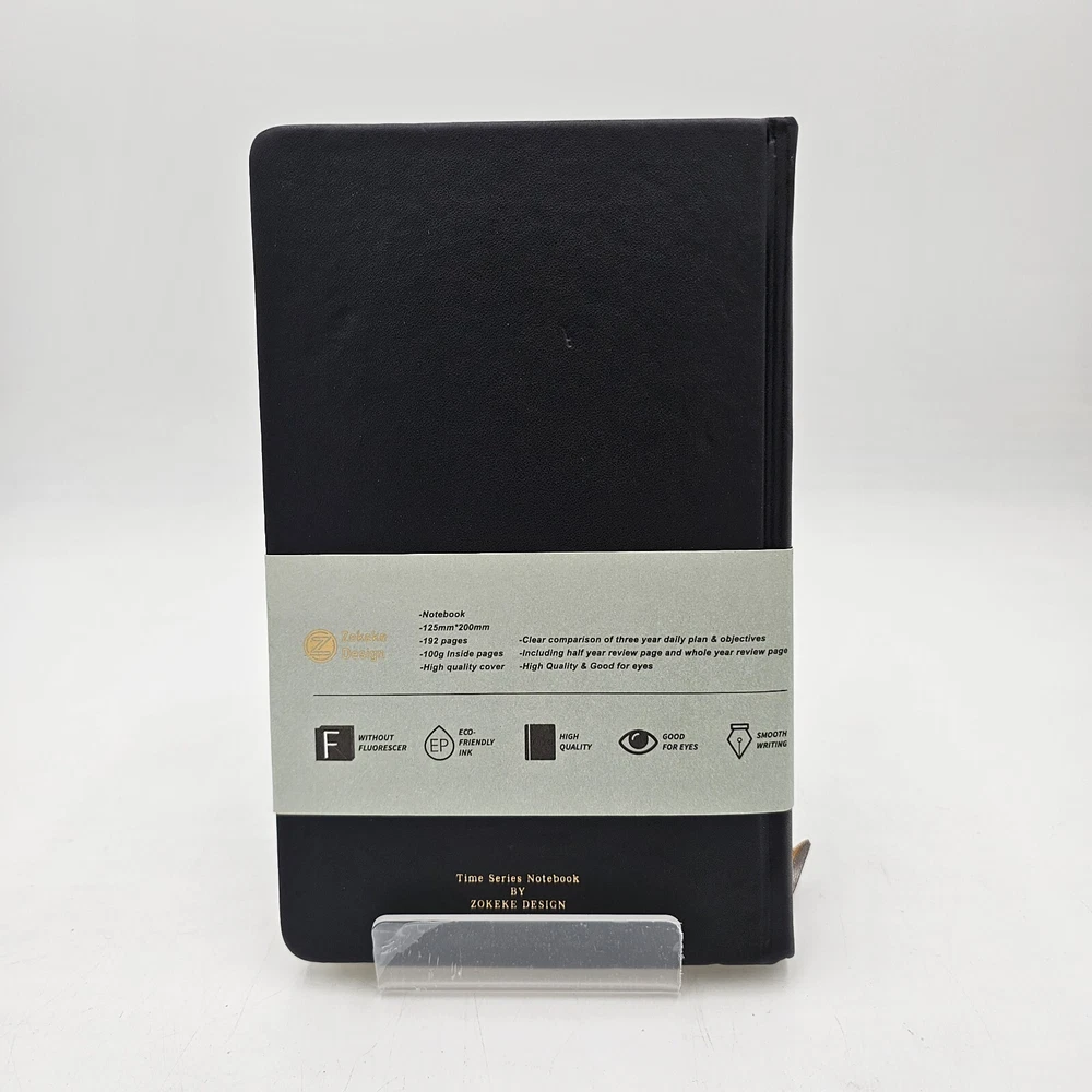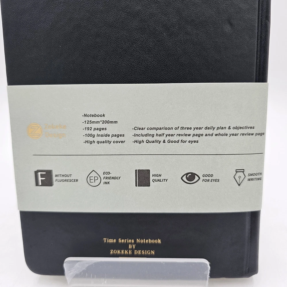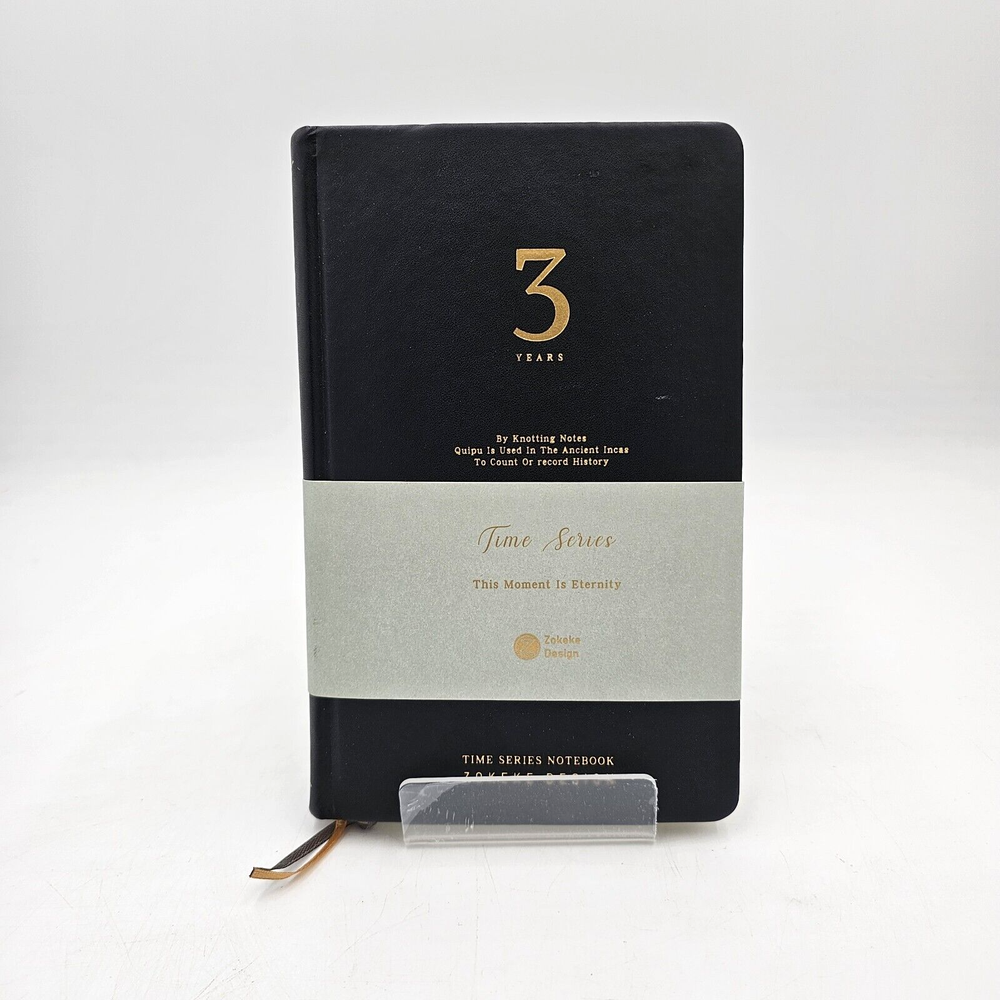 Time Series Notebook 3 Years Lined Journal, Daily Planner Hard Cover in Black PU Leather 5 x 8 inches with 100gsm Thick Paper 384 Pages (192 sheets) Published by Zokeke Design NEW This is a really nice journal with what looks like a very high quality 100gsm (that is thick) acid free paper (reduces ink bleeding/illegible writing) and fits easily in your hand. Water resistant PU Leather cover with rounded corners and a 2 ribbon bookmark. Free shipping/Next day (or earlier if the order gets in early in the day)