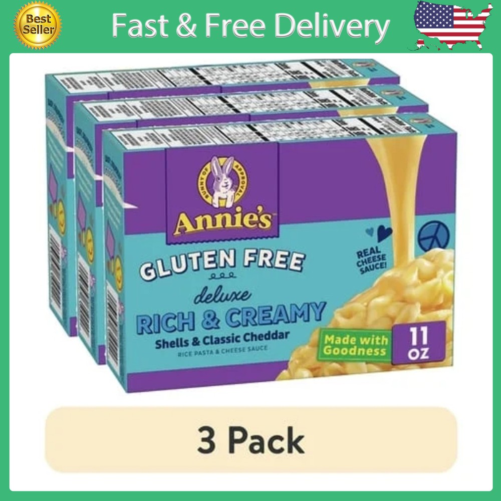 100% real cheeseGluten FreeCheese from cows not treated with the growth hormone rBST8g protein GLUTEN FREE MA C N CHEESE: A delicious, gluten free take on an iconic childhood favorite made with rice pasta shells and cheese sauce MADE WITH REAL CHEESE: Made with rich and creamy real cheddar cheese for a taste that will get the whole family hopping to the table QUICK AND EASY: Simply cook and drain rice pasta, stir in creamy cheese sauce, and serve as a tasty addition to kids meals, easy snacks for adults and more YUMMY FOR EVERYBUNNY: Here at Annie's, we create yummy food products that help make life a little easier and more delicious for busy bunnies and families on the go CONTAINS: One 11 oz box of Annie's Deluxe Gluten Free Shells and Classic Cheddar Ma c and Cheese Sauce