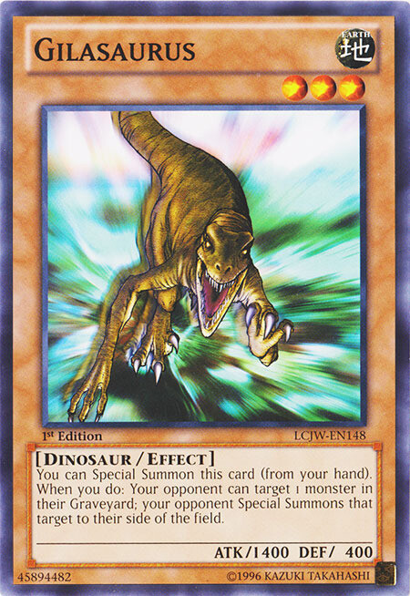 PICTURE IN LISTING IS ONLY FOR EXAMPLE ,it is a stock picture. Item condition is listed as "Used" because Ebay requires UPC codes for any item that is listed as "New", and trading cards do not have UPC Codes, so they must be listed as "Used". Card condition is listed in the listing title and in the item description. Rarity and edition of the card are described in the listing title and description. From this listing you will receive 3 card(s) for each purchase Description Set : Legendary Collection 4 Name : Gilasaurus Number : LCJW-EN148 Rarity : Common Condition : Near Mint Language : English We get your package in the mail quickly, please rate our service based on how quickly we gave your package to the post office. Not on how long it took the post office to deliver it. As we all know we cannot control that. If you have concerns about our shipping service, please send us a message and we will gladly talk to you about it and explain it. Domestic Buyers: Domestic orders within the United States are shipped for one flat rate, no cost for additional cards purchased on the same invoice. International Buyers: International orders are shipped First Class Mail International with and an additional item fee of $0.50. Orders over $50.00 USD require additional postage fees because of shipping method changes. SPECIAL REQUIREMENTS For International Orders Any International order greater than $100.00 USD will require shipment by : USPS Global Express Mail This is a flat rate service and you may ship cards totaling up to 16 ounces, the weight limit on the package. The following International Countries can request USPS First Class Mail International Package as the shipment method for orders over $50.00 USD as this service provides electronic tracking to these countries. This service is more expensive than the normal USPS First Class Mail International service, but cheaper than USPS Priority Mail International. Australia Gibraltar Netherlands Belgium Great Britain New Zealand Canada Hungary Northern Ireland Croatia Israel Portugal Denmark Latvia Singapore Estonia Lithuania Spain Finland Luxembourg Switzerland France Malaysia Germany Malta Special Handling of International orders : We reserve the right to hold and/or cancel any International order in which it appears the buyer is attempting to circumvent our Global Express shipping requirements by breaking up larger purchases into smaller orders. Orders made within a 30 day window and having previous orders that have not yet been acknowledged as received, via Feedback and Ebay messages will be subject to this condition and may be held until all previous orders have been acknowledged as received. International Buyers – Please Note: Import duties, taxes and charges are not included in the item price or shipping charges. These charges are the buyer's responsibility. Please check with your country's customs office to determine what these additional costs will be prior to bidding/buying. SHIPPING: Every attempt is made to send your item out within 1 business day of receipt of payment. Check our feedback! Pre-sell items are shipped within 1 business day of us getting merchandise in hand. Default Shipping Methods: Domestic Orders: Shipped First Class Mail Cards will be shipped with a Hard Sleeve and/or a Soft Sleeve for protection in accordance with eBay's standard envelope policy. International Orders: Shipped First Class Mail International Cards will be shipped with a Hard Sleeve and/or a Soft Sleeve for protection in accordance with eBay's standard envelope policy. We use all new and clean products to package your cards. If you have any questions, please do not hesitate to ask!