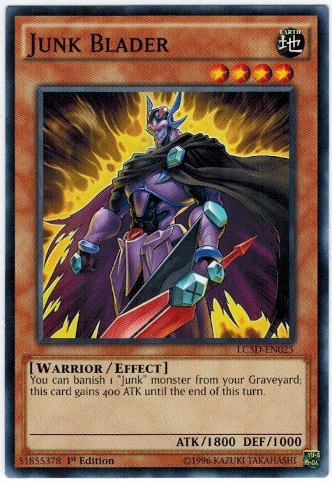 PICTURE IN LISTING IS ONLY FOR EXAMPLE ,it is a stock picture. Item condition is listed as "Used" because Ebay requires UPC codes for any item that is listed as "New", and trading cards do not have UPC Codes, so they must be listed as "Used". Card condition is listed in the listing title and in the item description. Rarity and edition of the card are described in the listing title and description. From this listing you will receive 3 card(s) for each purchase Description Set : Legendary Collection 5D's Name : Junk Blader Number : LC5D-EN025 Rarity : Common Condition : Near Mint Language : English We get your package in the mail quickly, please rate our service based on how quickly we gave your package to the post office. Not on how long it took the post office to deliver it. As we all know we cannot control that. If you have concerns about our shipping service, please send us a message and we will gladly talk to you about it and explain it. Domestic Buyers: Domestic orders within the United States are shipped for one flat rate, no cost for additional cards purchased on the same invoice. International Buyers: International orders are shipped First Class Mail International with and an additional item fee of $0.50. Orders over $50.00 USD require additional postage fees because of shipping method changes. SPECIAL REQUIREMENTS For International Orders Any International order greater than $100.00 USD will require shipment by : USPS Global Express Mail This is a flat rate service and you may ship cards totaling up to 16 ounces, the weight limit on the package. The following International Countries can request USPS First Class Mail International Package as the shipment method for orders over $50.00 USD as this service provides electronic tracking to these countries. This service is more expensive than the normal USPS First Class Mail International service, but cheaper than USPS Priority Mail International. Australia Gibraltar Netherlands Belgium Great Britain New Zealand Canada Hungary Northern Ireland Croatia Israel Portugal Denmark Latvia Singapore Estonia Lithuania Spain Finland Luxembourg Switzerland France Malaysia Germany Malta Special Handling of International orders : We reserve the right to hold and/or cancel any International order in which it appears the buyer is attempting to circumvent our Global Express shipping requirements by breaking up larger purchases into smaller orders. Orders made within a 30 day window and having previous orders that have not yet been acknowledged as received, via Feedback and Ebay messages will be subject to this condition and may be held until all previous orders have been acknowledged as received. International Buyers β Please Note: Import duties, taxes and charges are not included in the item price or shipping charges. These charges are the buyer's responsibility. Please check with your country's customs office to determine what these additional costs will be prior to bidding/buying. SHIPPING: Every attempt is made to send your item out within 1 business day of receipt of payment. Check our feedback! Pre-sell items are shipped within 1 business day of us getting merchandise in hand. Default Shipping Methods: Domestic Orders: Shipped First Class Mail Cards will be shipped with a Hard Sleeve and/or a Soft Sleeve for protection in accordance with eBay's standard envelope policy. International Orders: Shipped First Class Mail International Cards will be shipped with a Hard Sleeve and/or a Soft Sleeve for protection in accordance with eBay's standard envelope policy. We use all new and clean products to package your cards. If you have any questions, please do not hesitate to ask!