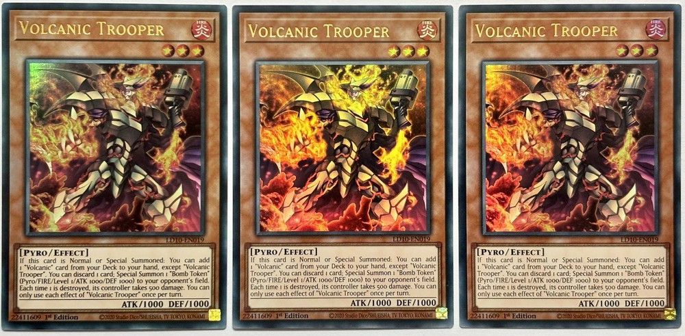 3 x LD10-EN019 Volcanic Trooper - Ultra Rare 1st Edition Near Mint YuGiOh Cards Please see images for any defects, as cards will be received as shown. Further images available on request. All conditions have been evaluated using Ebay's card condition guidelines for collectible card games, which can be found at a glance in the images and also viewed here in more detail: eBay card condition guidelines | eBay.co.uk I am currently selling all cards within my collection, with many still to be listed. Please check out my eBay profile for other offerings. Thanks for viewing!